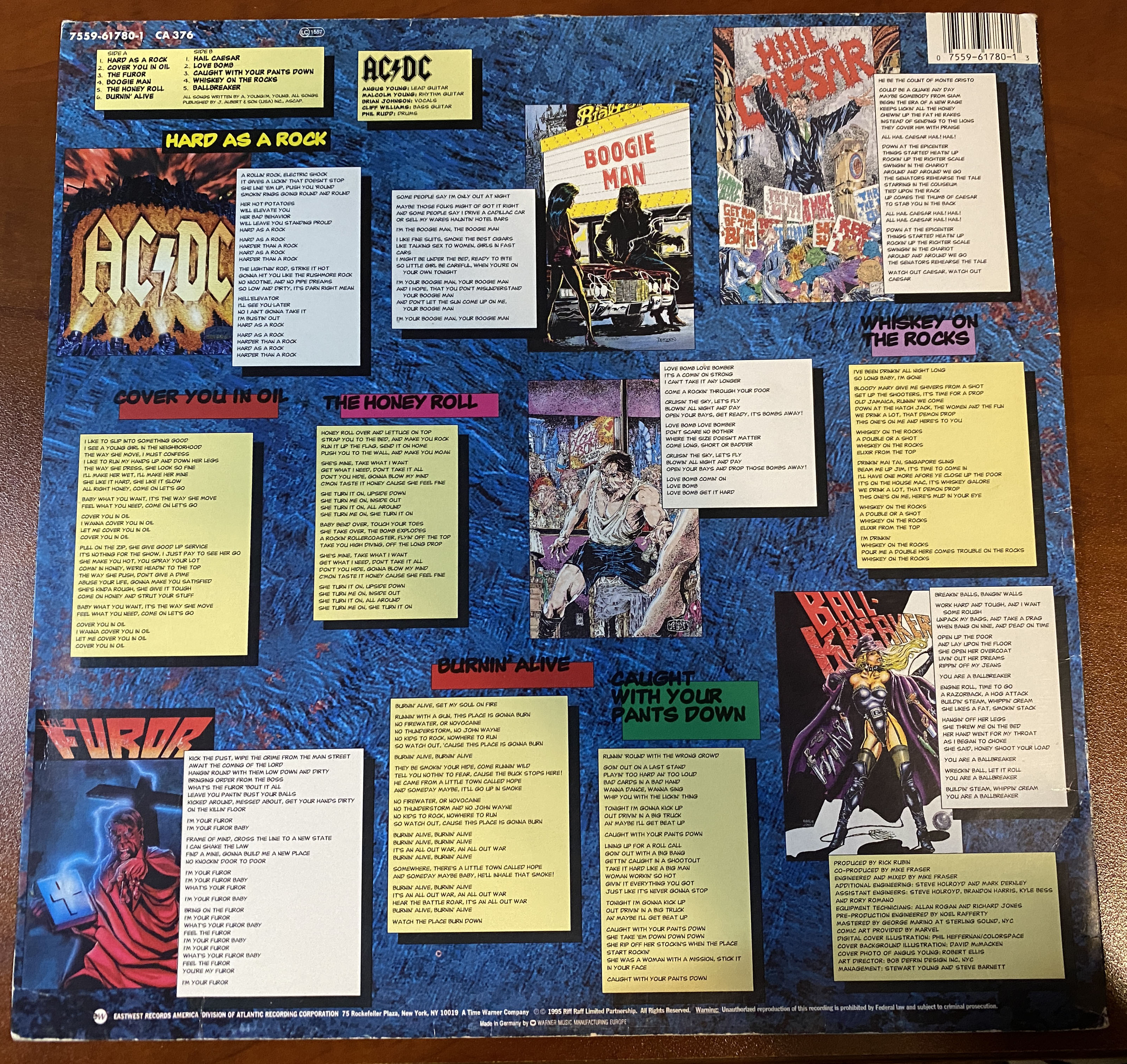 Side 1 1) Hard as a Rock 2) Cover You in Oil 3) The Furor 4) Boogie Man 5) The Honey Roll 6) Burnin' Alive Side 2 1) Hail Caesar 2) Love Bomb 3) Caught with Your Pants Down 4) Whiskey on the Rocks 5) Ballbreakers |