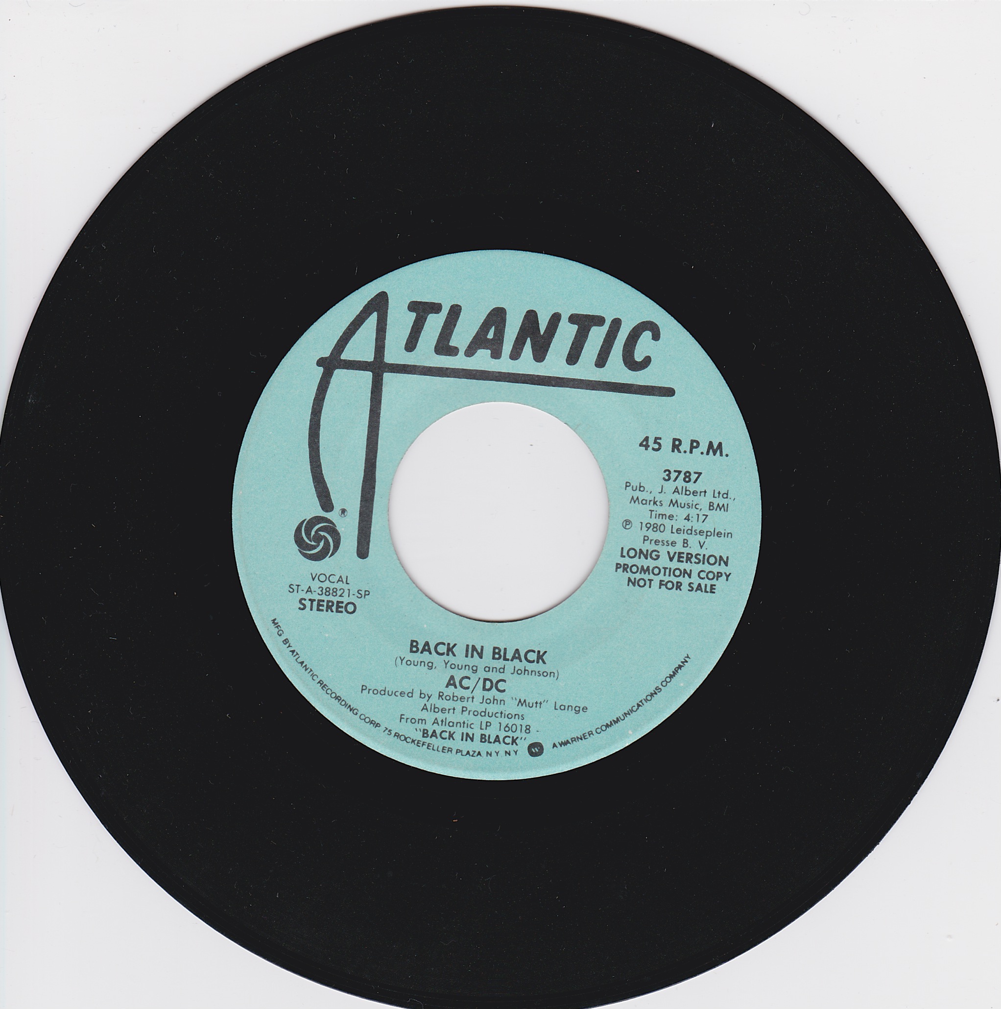 Side 1 1) Back in Black (Long Version) Side 2 1) Back in Black (Short Version) |