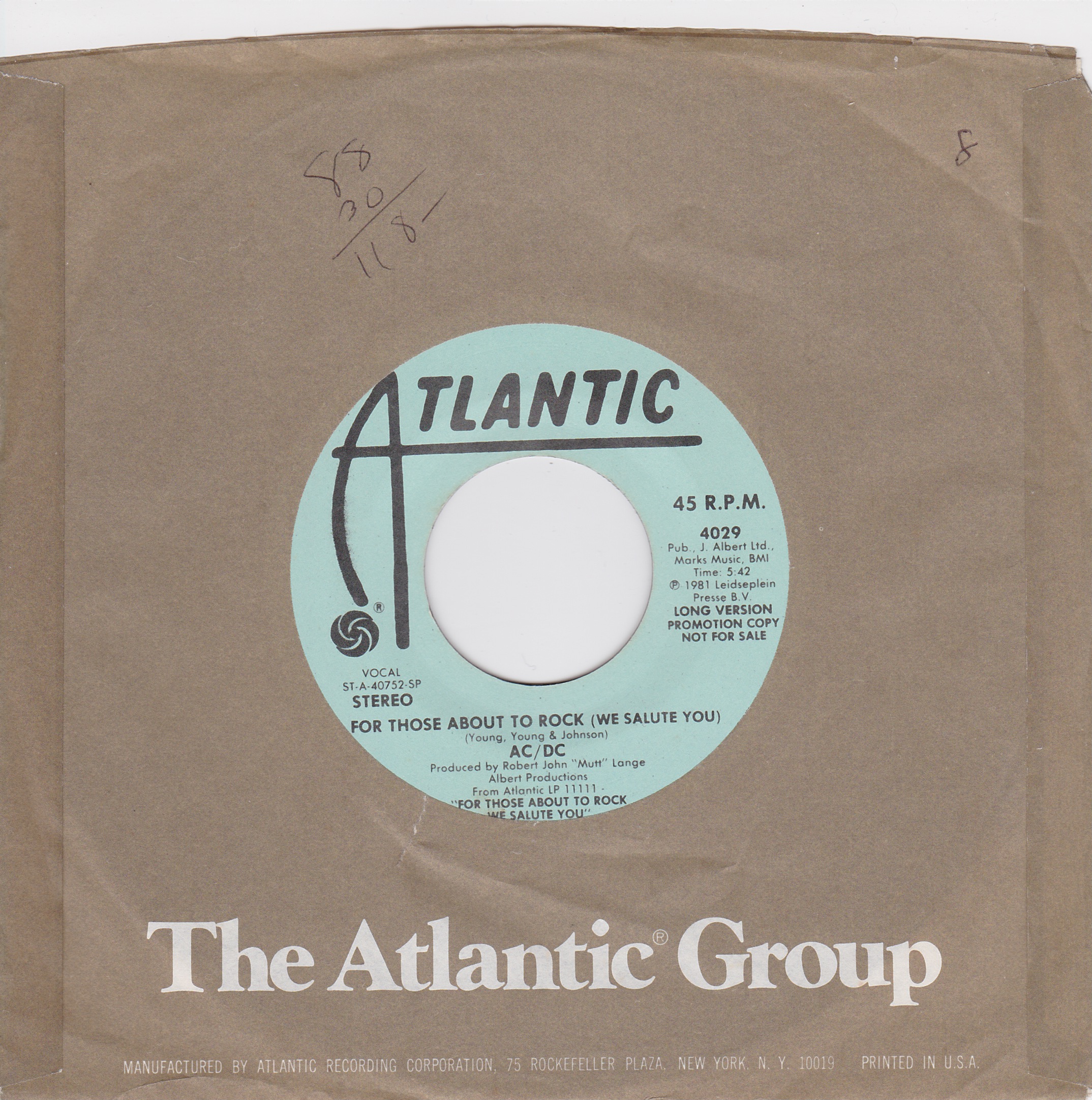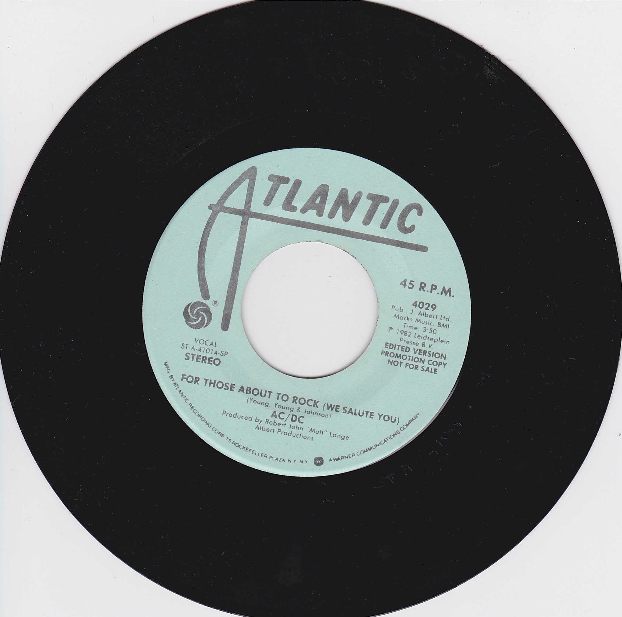 Side 1 1) For Those About to Rock (Edited Version) Side 2 1) Long Version |