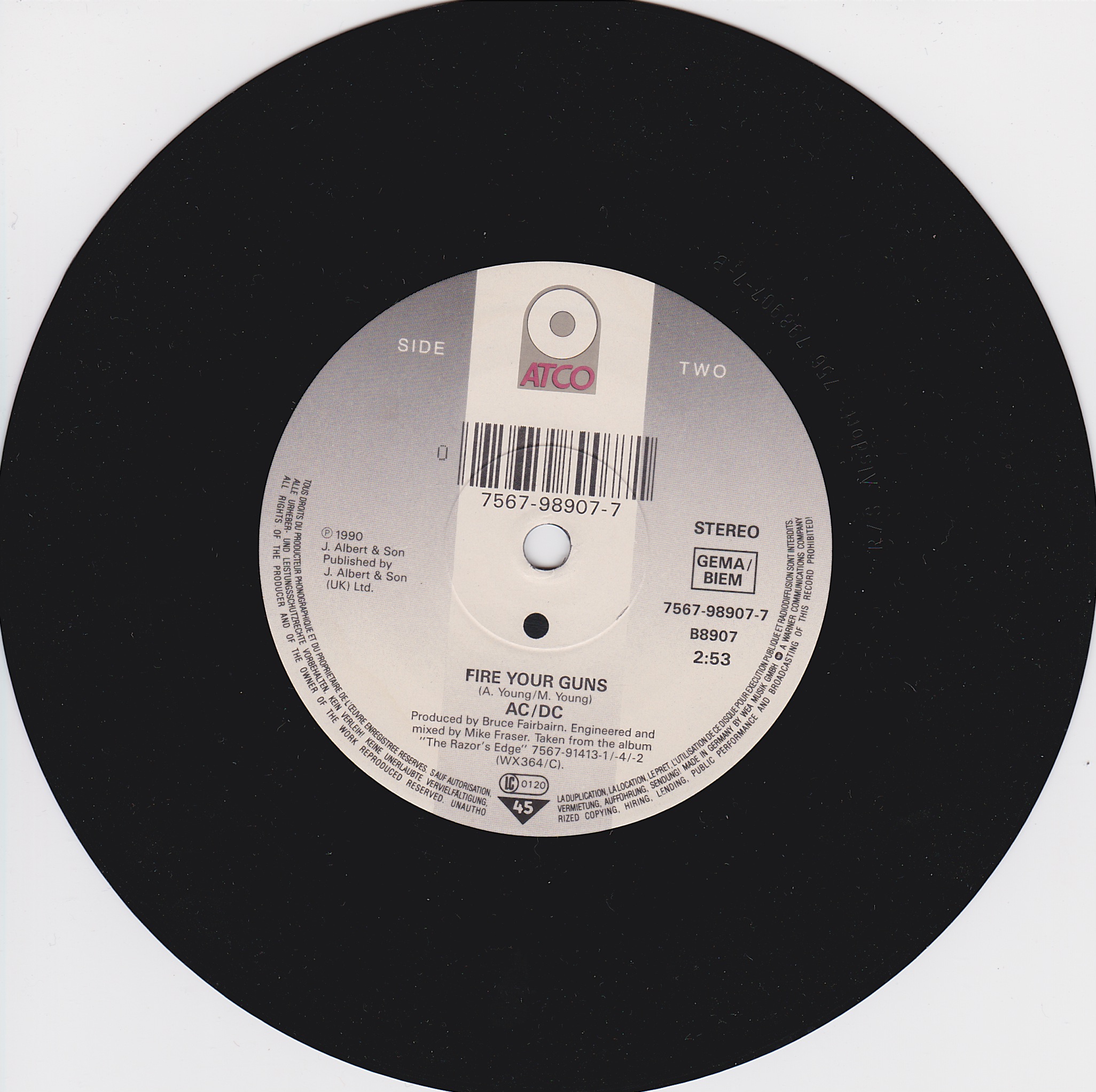 Side 1 1) Thunderstruck Side 2 1) Fire Your Guns |