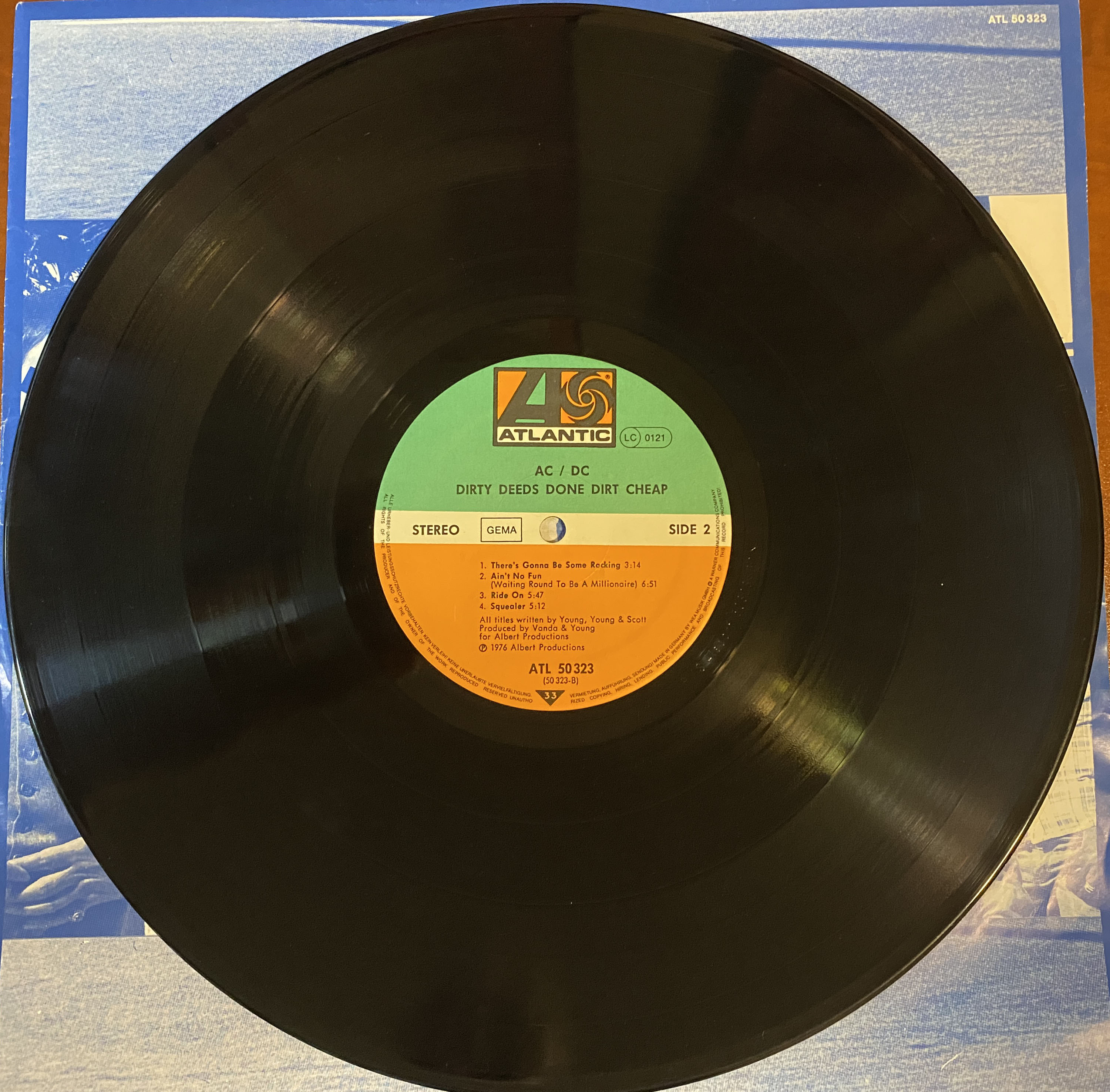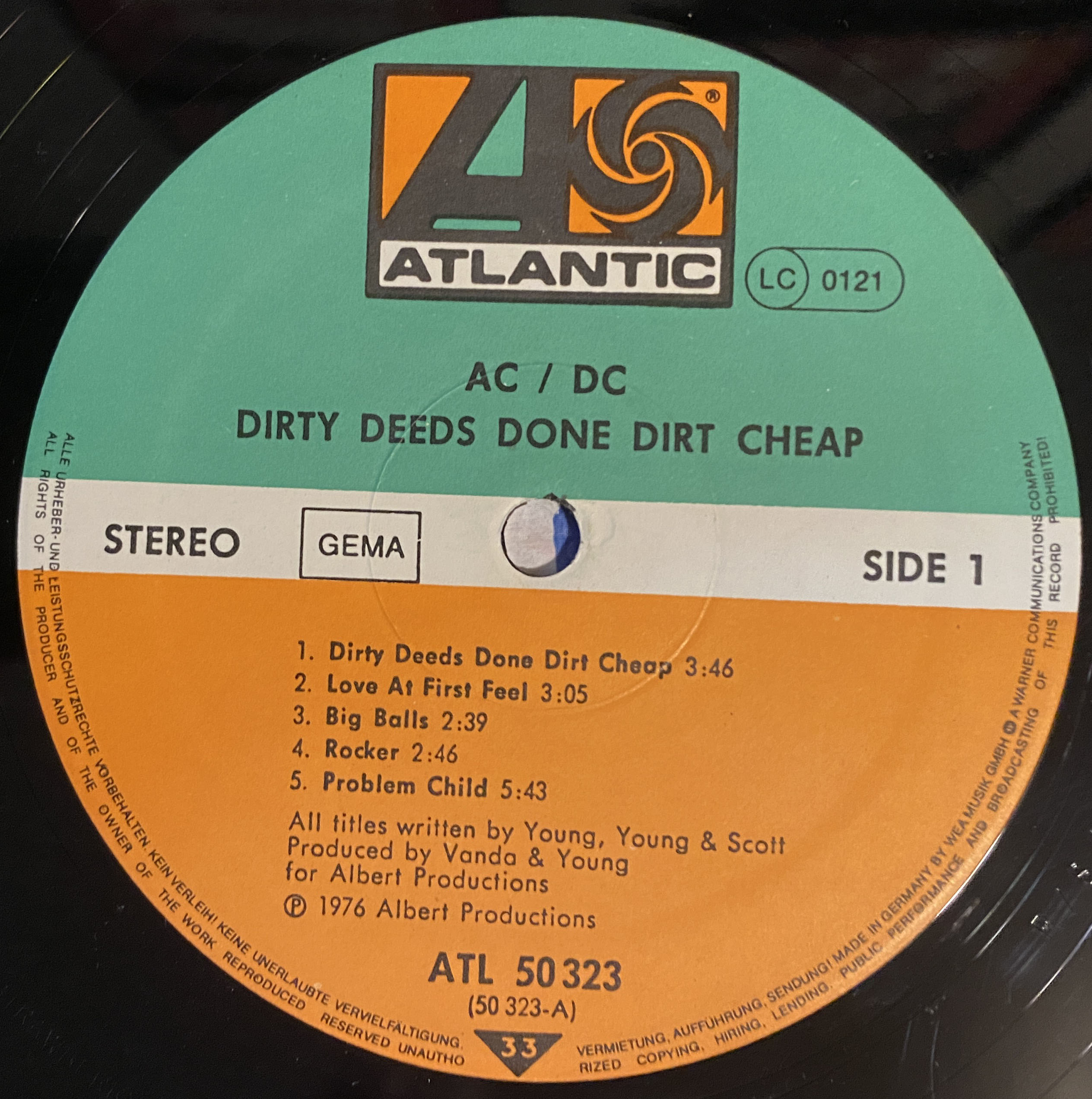 Side 1 1) Dirty Deeds Done Dirt Cheap 2) Love at First Feel 3) Big Balls 4) Rocker 5) Problem Child Side 2 1) There's Gonna be Some Rocking 2) Ain't No Fun 3) Ride On 4) Squealer |