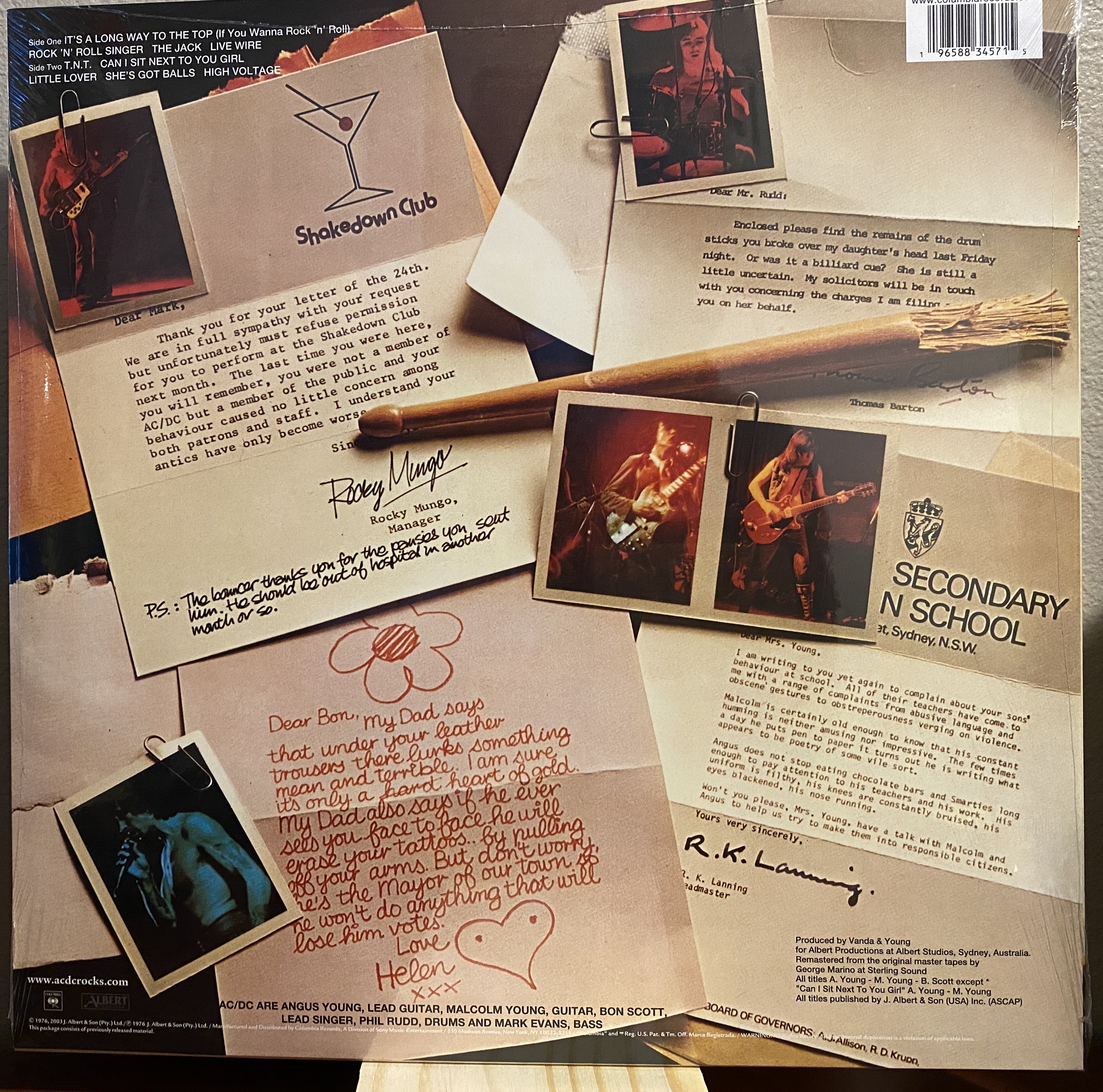 Side 1 1) It's a Long Way to the Top 2) Rock n Roll Singer 3) The Jack 4) Live Wire Side 2 1) TNT 2) Can I Sit Next to You Girl 3) Little Lover 4) She's Got Balls 5) High Voltage |