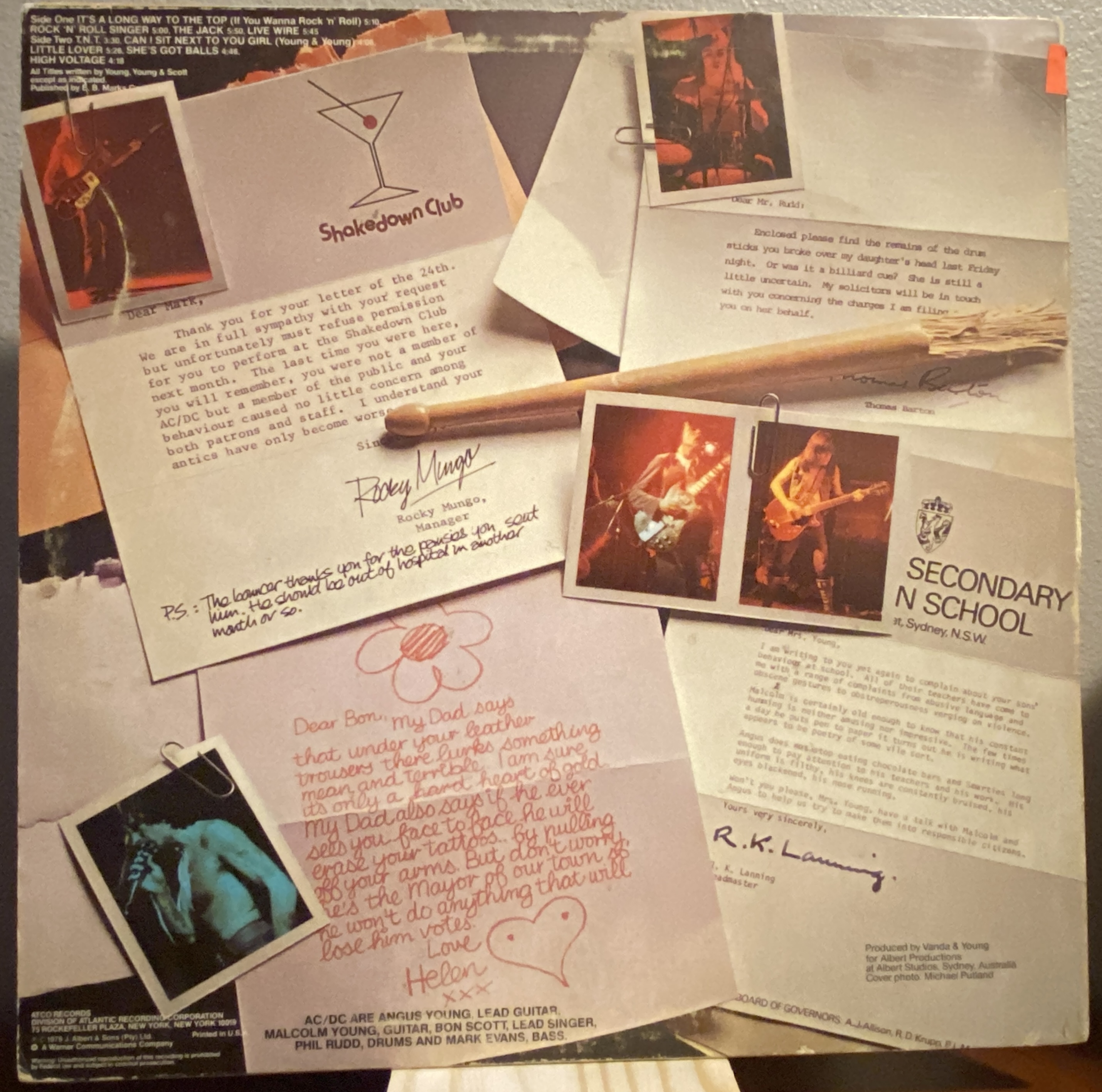 Side 1 1) It's a Long Way to the Top 2) Rock n Roll Singer 3) The Jack 4) Live Wire Side 2 1) TNT 2) Can I Sit Next to You Girl 3) Little Lover 4) She's Got Balls 5) High Voltage |