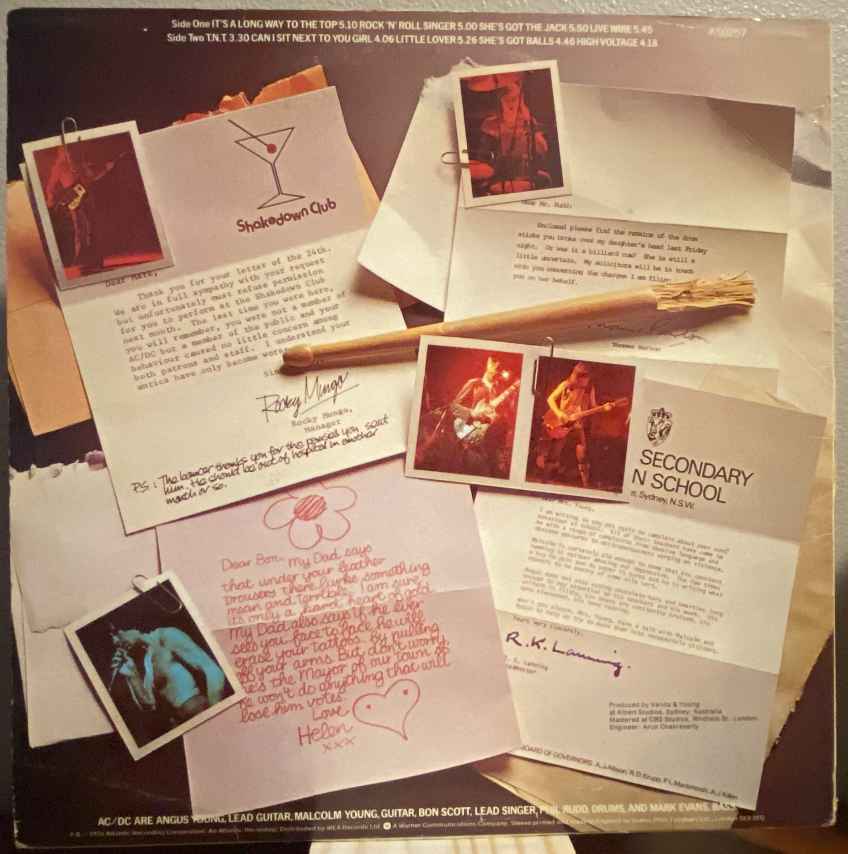 Side 1 1) It's a Long Way to the Top 2) Rock and Roll Singer 3) The Jack 4) Live Wire Side 2 1) TNT 2) Can I Sit Next to You Girl 3) Little Lover 4) She's Got Balls 5) High Voltage |