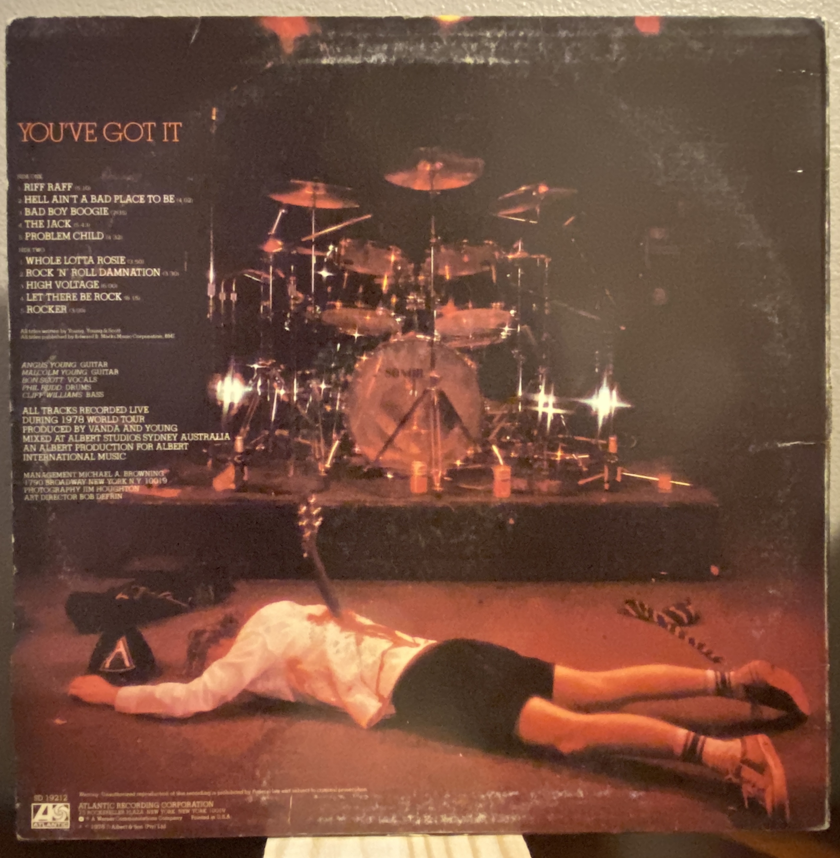 Side 1 1) Riff Raff 2) Hell Ain't a Bad Place to Be 3) Bad Boy Boogie 4) The Jack 5) Problem Child Side 2 1) Whole Lotta Rosie 2) Rock n Roll Damnation 3) High Voltage 4) Let There Be Rock 5) Rocker |