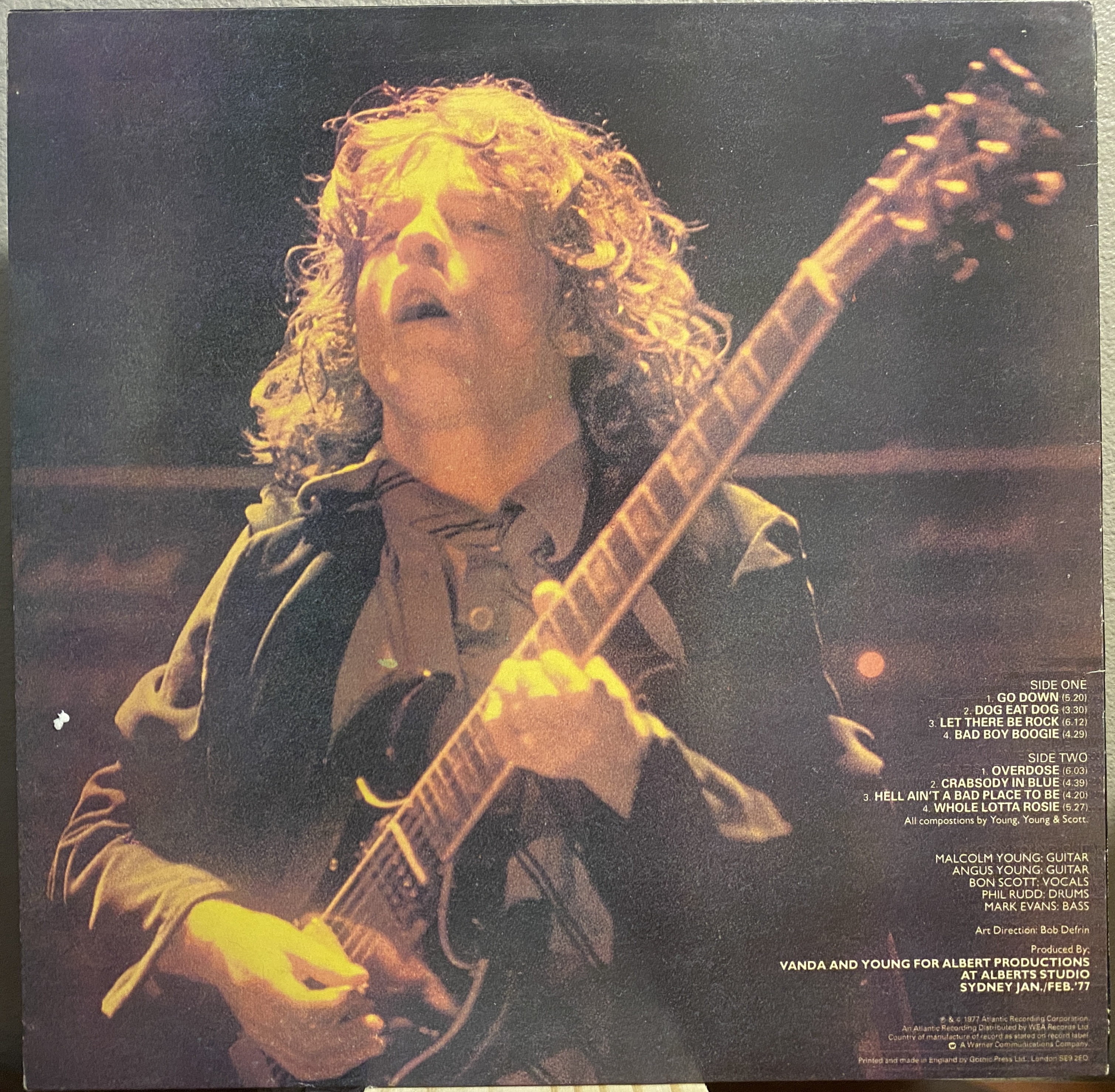 Side 1 1) Go Down 2) Dog Eat Dog 3) Let There Be Rock 4) Dog Eat Dog Side 2 1) Overdose 2) Crabsody in Blue 3) Hell Ain't a Bad Place to Be 4) Whole Lotta Rosie |