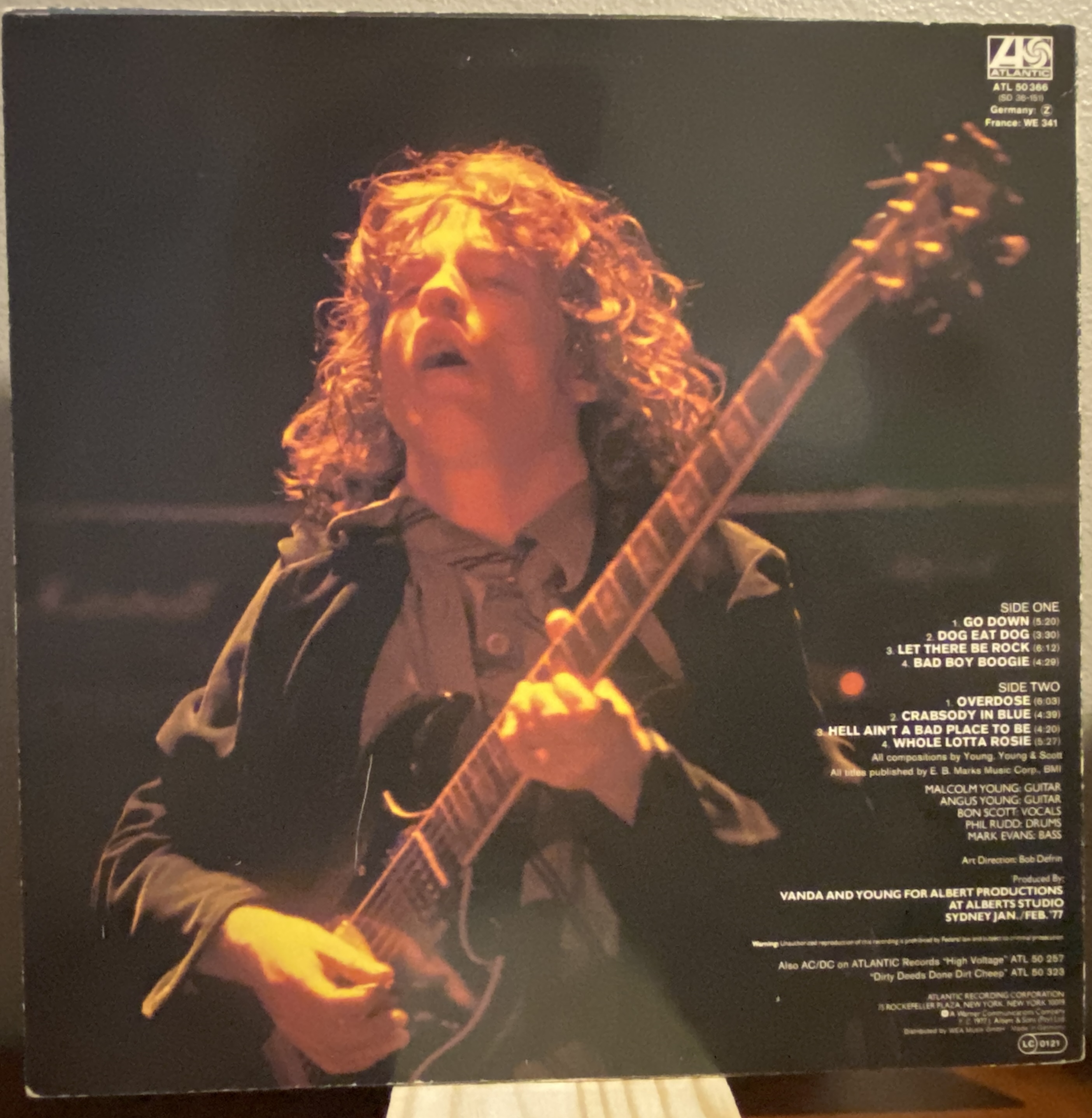 Side 1 1) Go Down 2) Dog Eat Dog 3) Let There Be Rock 4) Bad Boy Boogie Side 2 1) Overdose 2) Crabsody in Blue 3) Hell Ain't a Bad Place to Be 4) Whole Lotta Rosie |