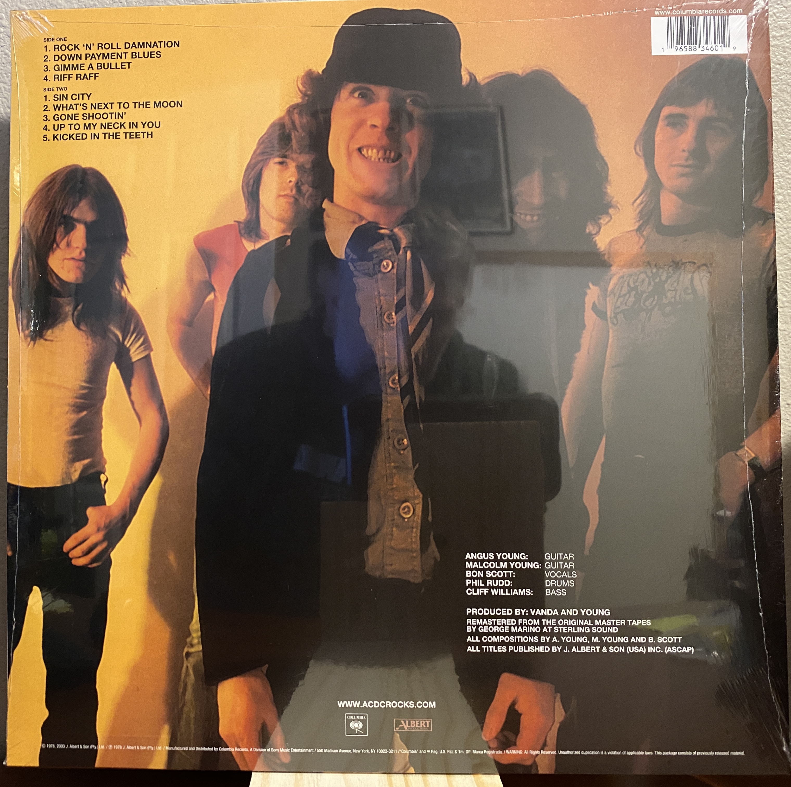 Side 1 1) Rock n Roll Damnation 2) Down Payment Blues 3) Gimme a Bullet 4) Riff Raff Side 2 1) Sin City 2) What's Next to the Moon 3) Gone Shootin' 4) Up to My Neck in You 5) Kicked in the Teeth |
