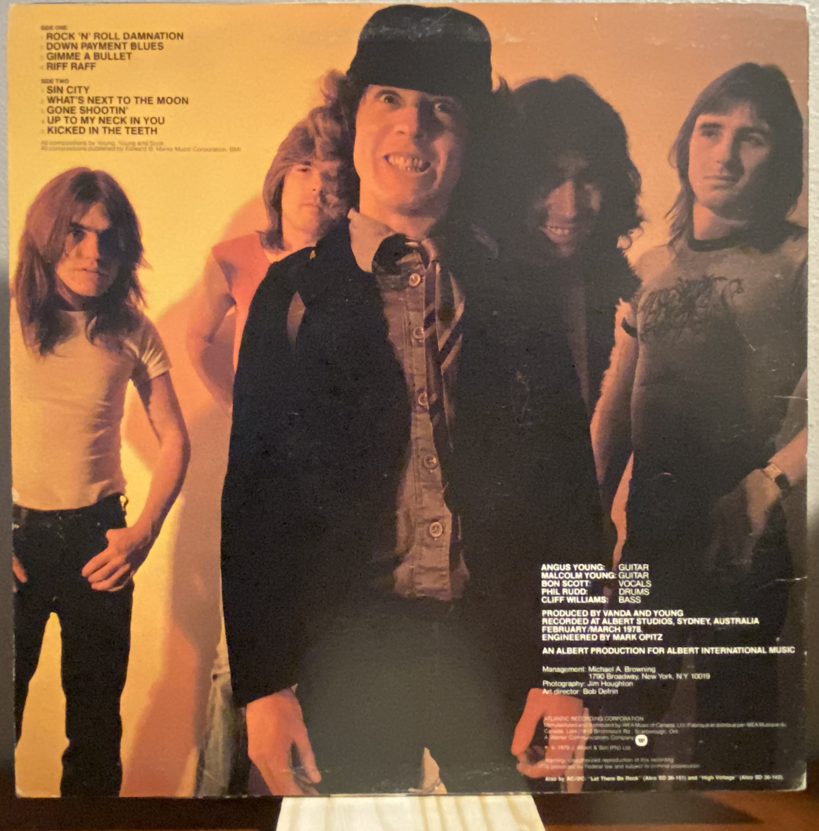 Side 1 1) Rock and Roll Damnation 2) Down Payment Blues 3) Gimme a Bullet 4) Riff Raff Side 2 1) Sin City 2) What's Next to the Moon 3) Gone Shootin 4) Up to My Neck in You 5) Kicked in the Teeth |