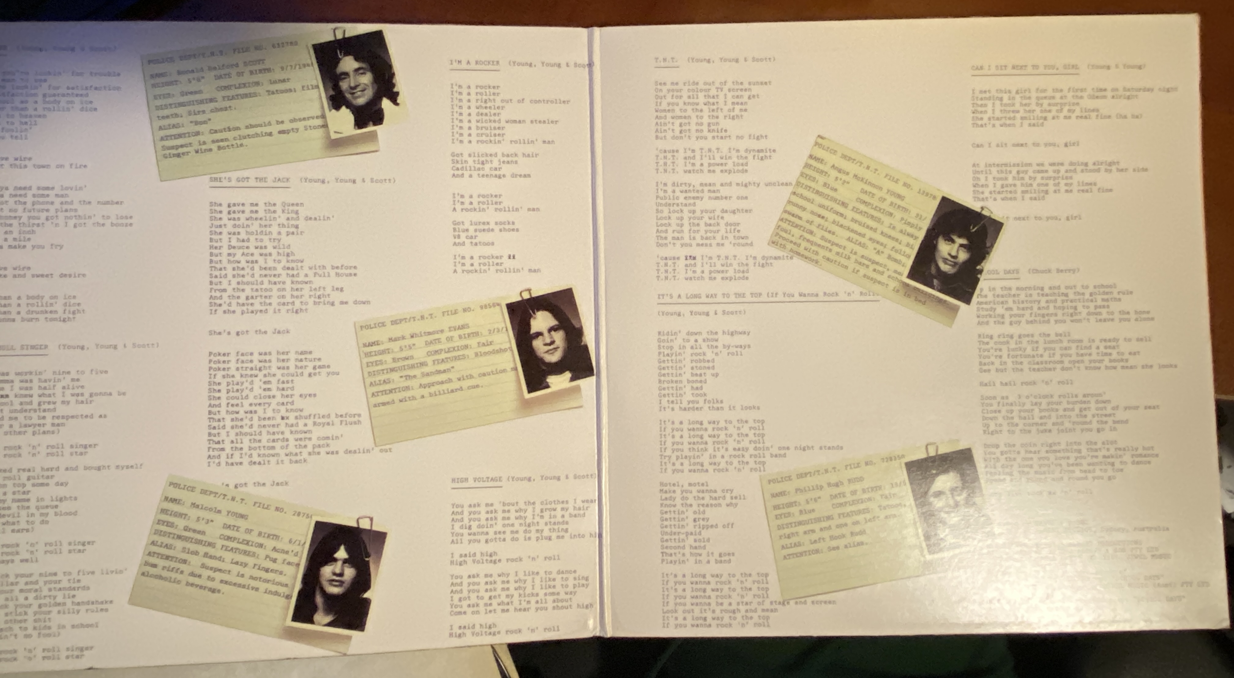 Side 1 1) It's a Long Way to the Top 2) Rock n Roll Singer 3) The Jack 4) Live Wire Side 2 1) TNT 2) Rocker 3) Can I Sit Next to You Girl 4) High Voltage 5) School Days |