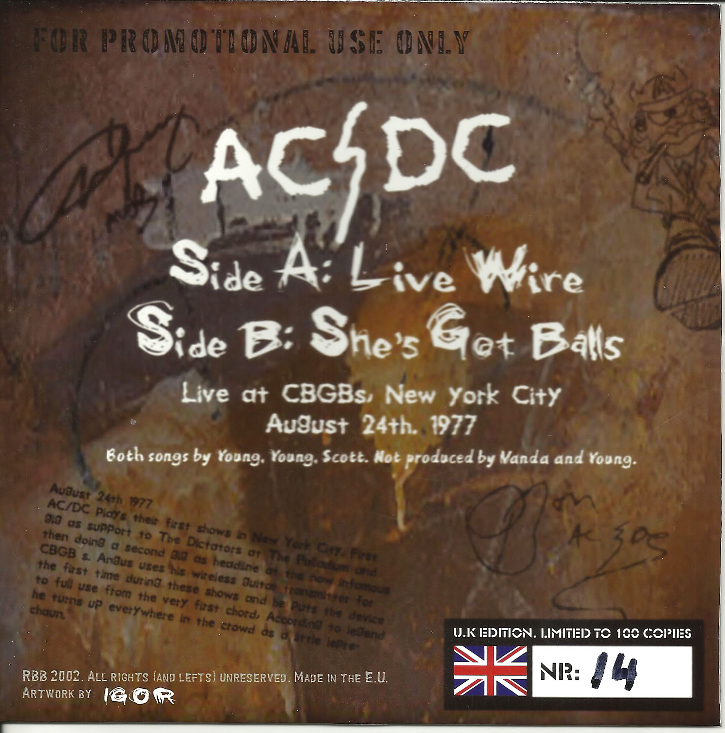 Side 1 1) Live Wire Side 2 1) She's Got Balls |