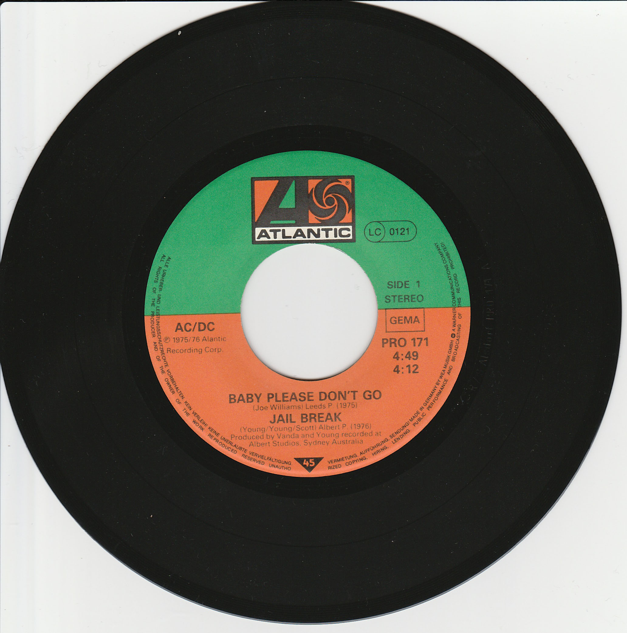 Side A 1) Baby Please Don't Go 2) Jailbreak Side B 1) Soul Stripper |