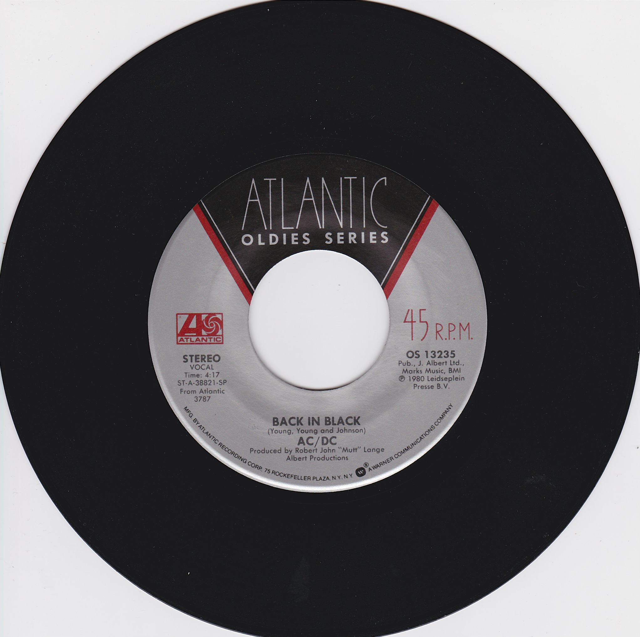 Side 1 1) Back in Black Side 2 1) You Shook Me All Night Long |