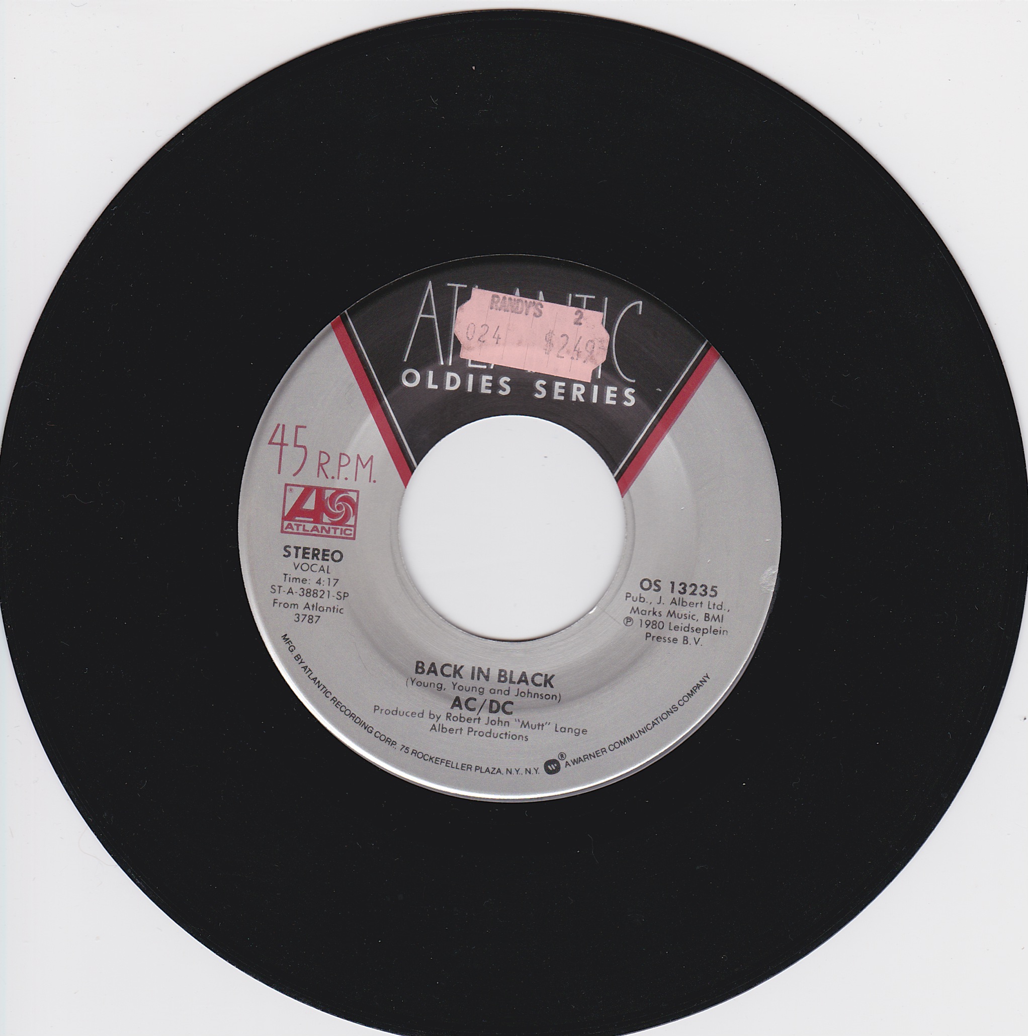 Side 1 1) Back in Black Side 2 1) You Shook Me All Night Long |