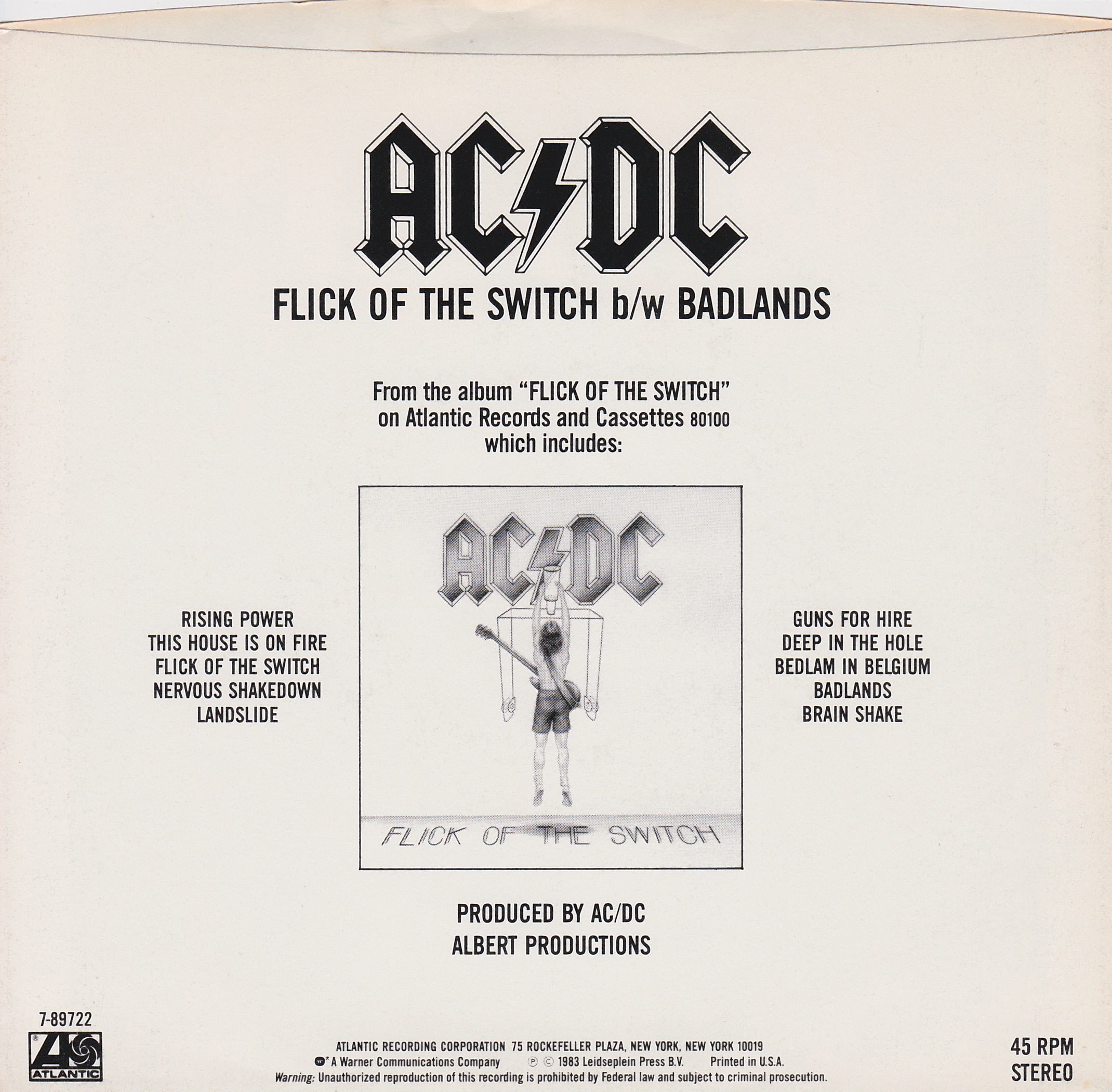Side 1 1) Flick of the Switch Side 2 1) Badlands |