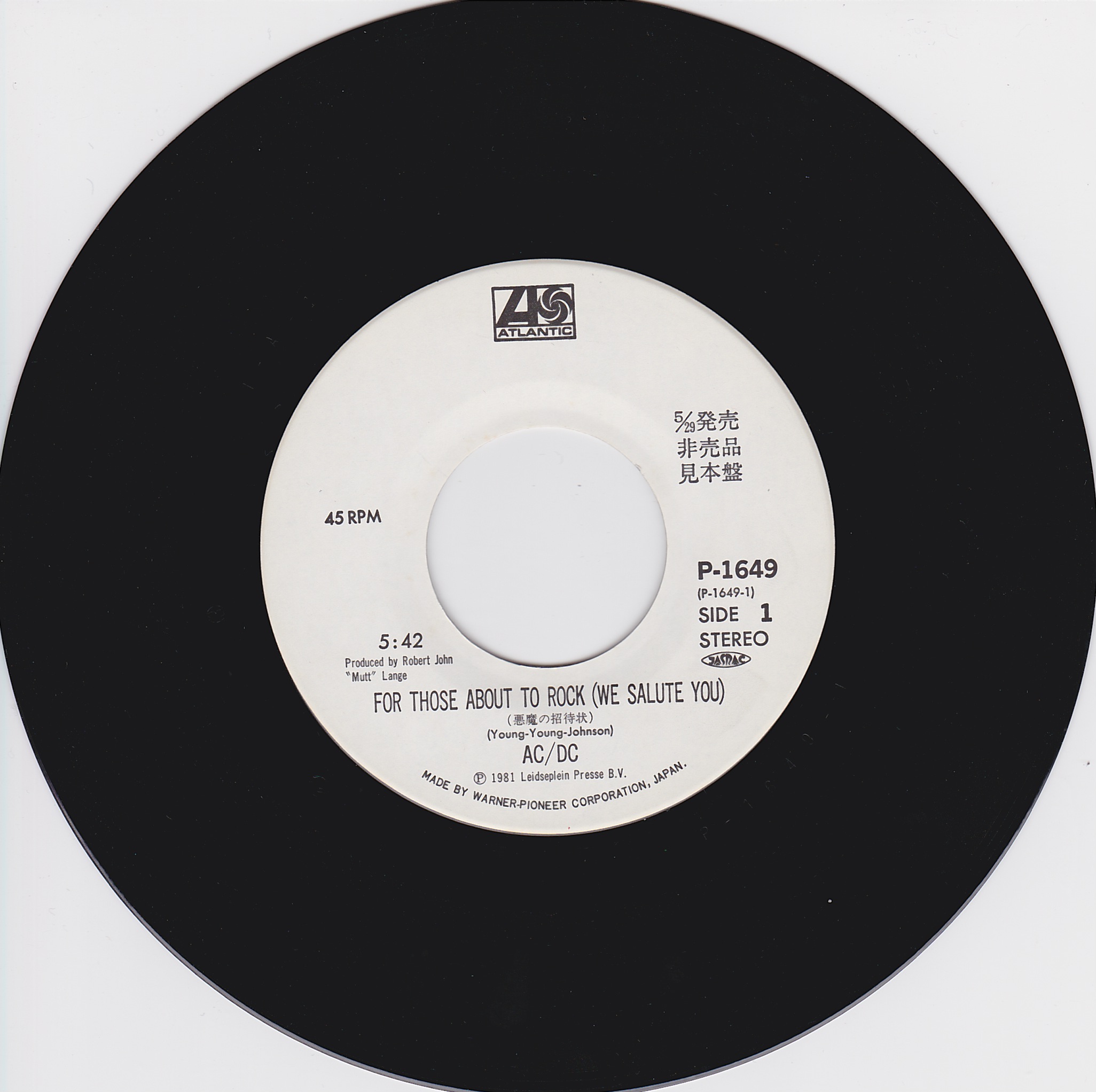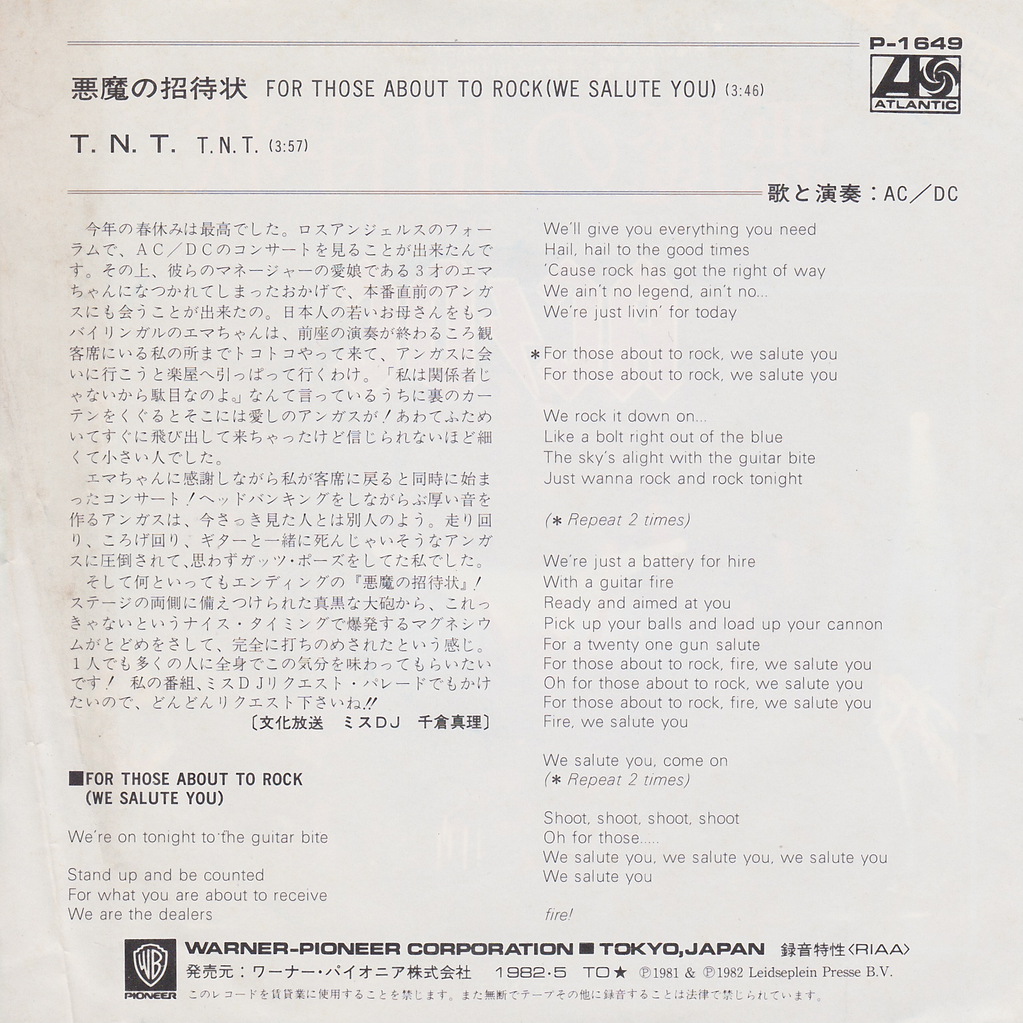 Side 1 1) For Those About to Rock Side 2 1) TNT |