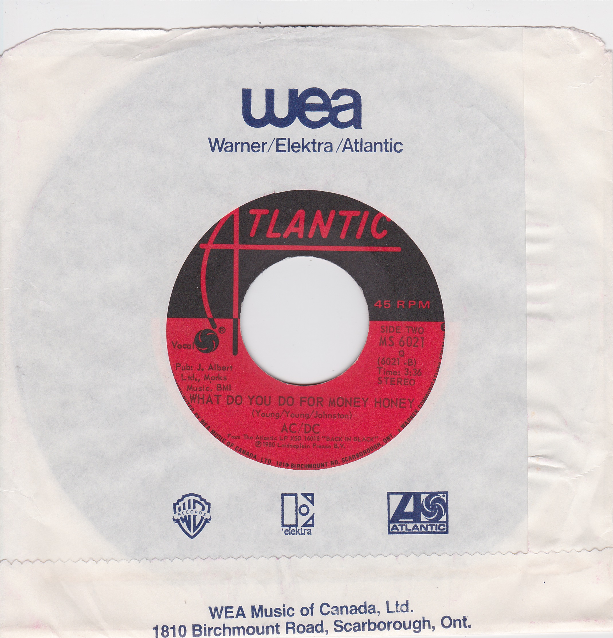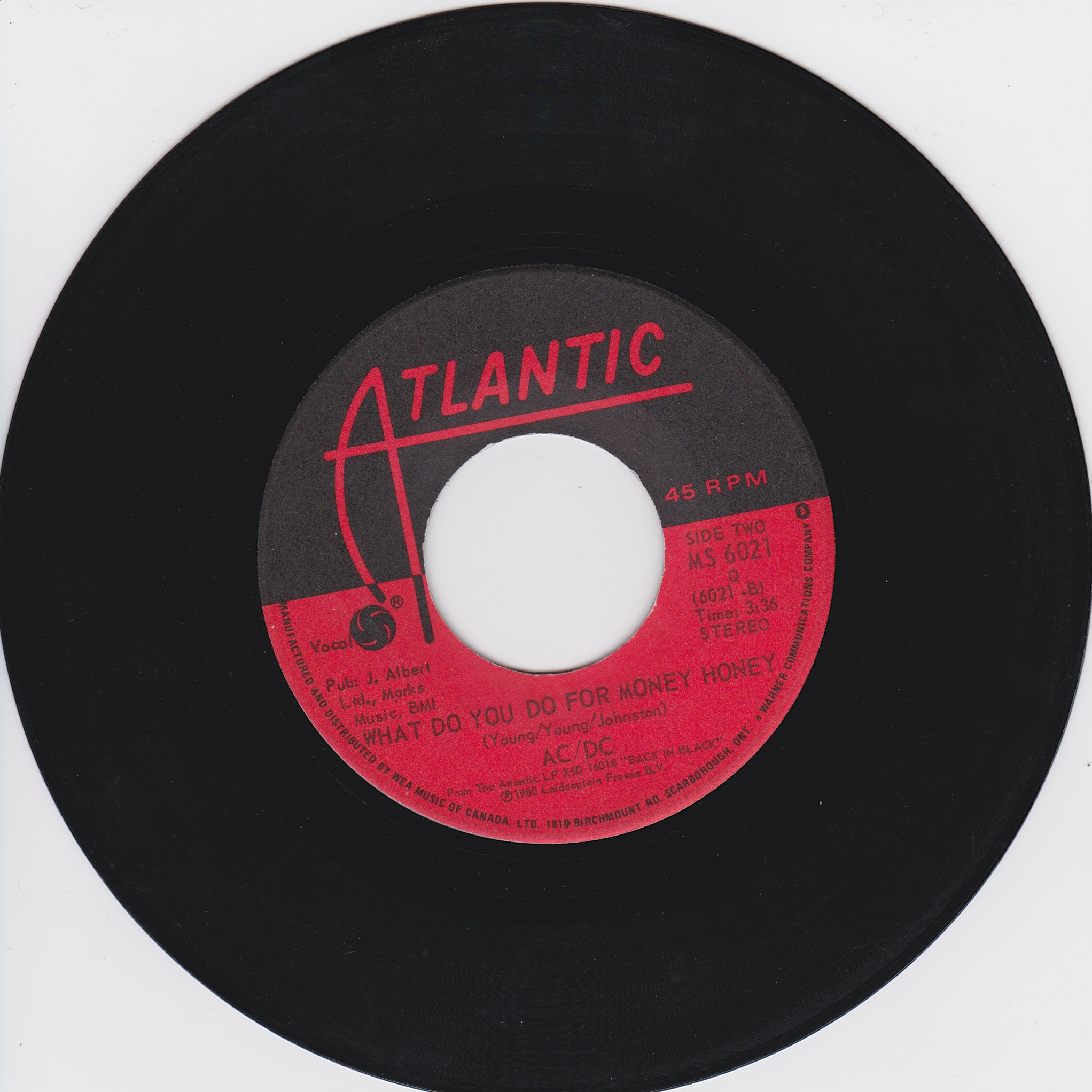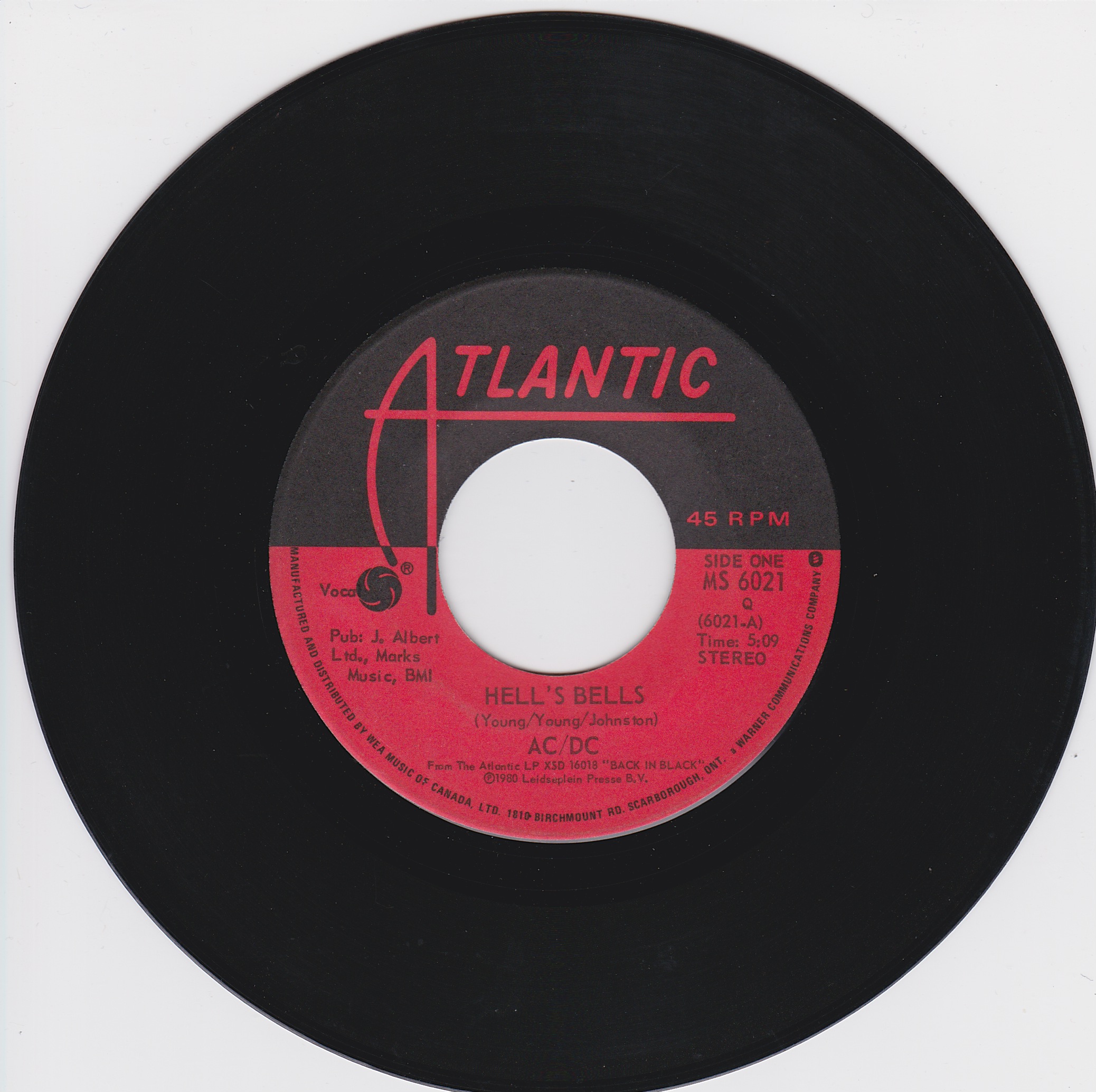Side 1 1) Hells Bells Side 2 1) What Do You Do for Money Honey |