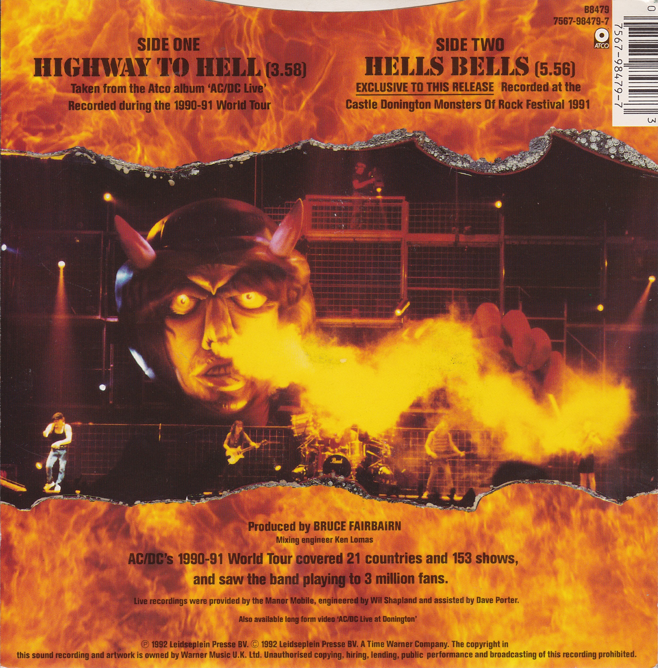 Highway to Hell is from the AC/DC Live album. Hells Bells was previously unreleased and is from the Donington, England show on Aug 17, 1991. |