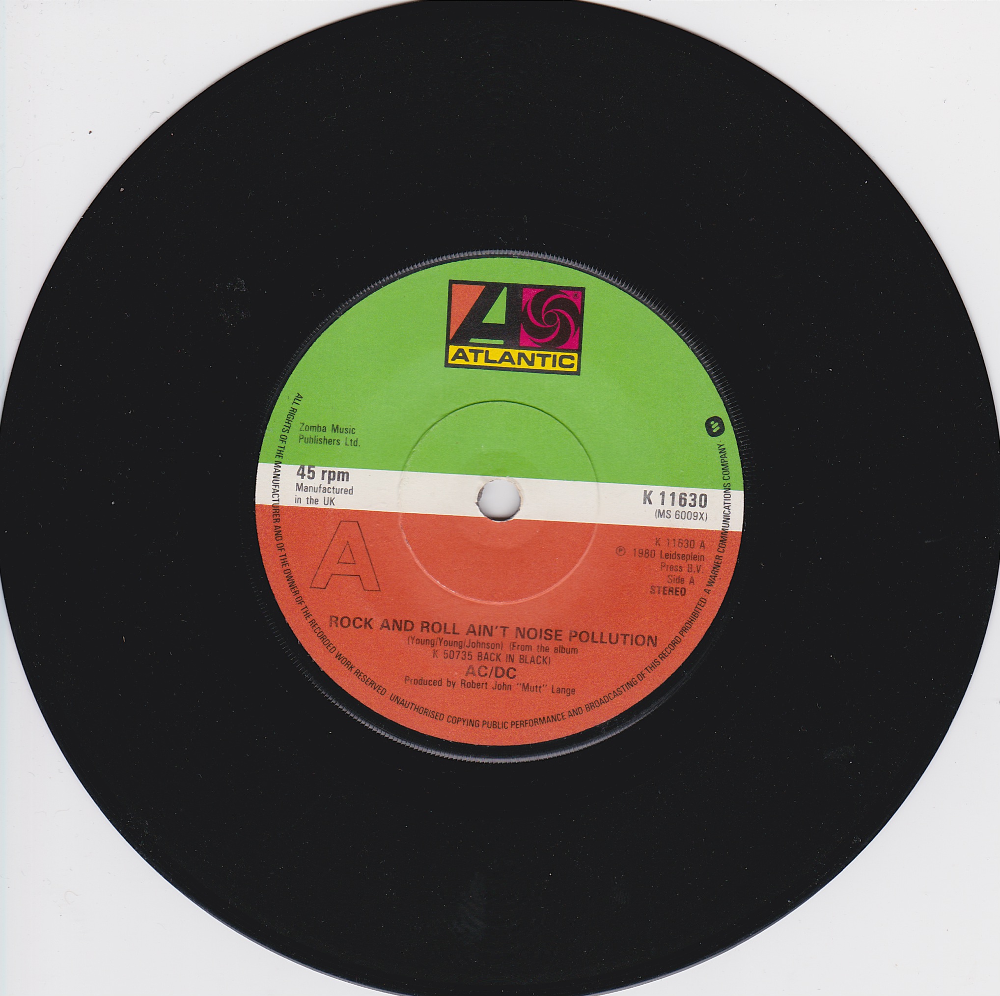 Side 1 1) Rock and Roll Ain't Noise Pollution Side 2 1) Hells Bells |