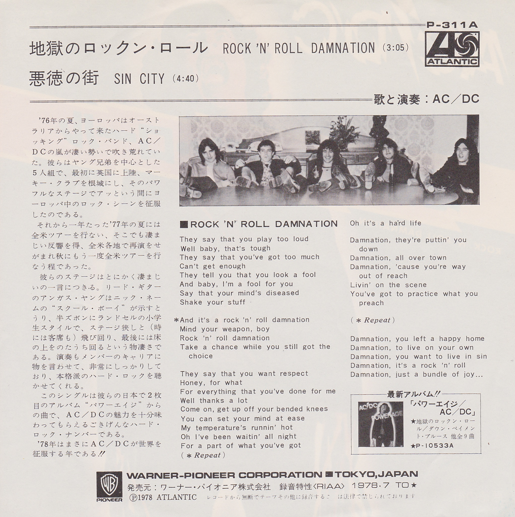 Side 1 1) Rock n Roll Damnation Side 2 1) Sin City |