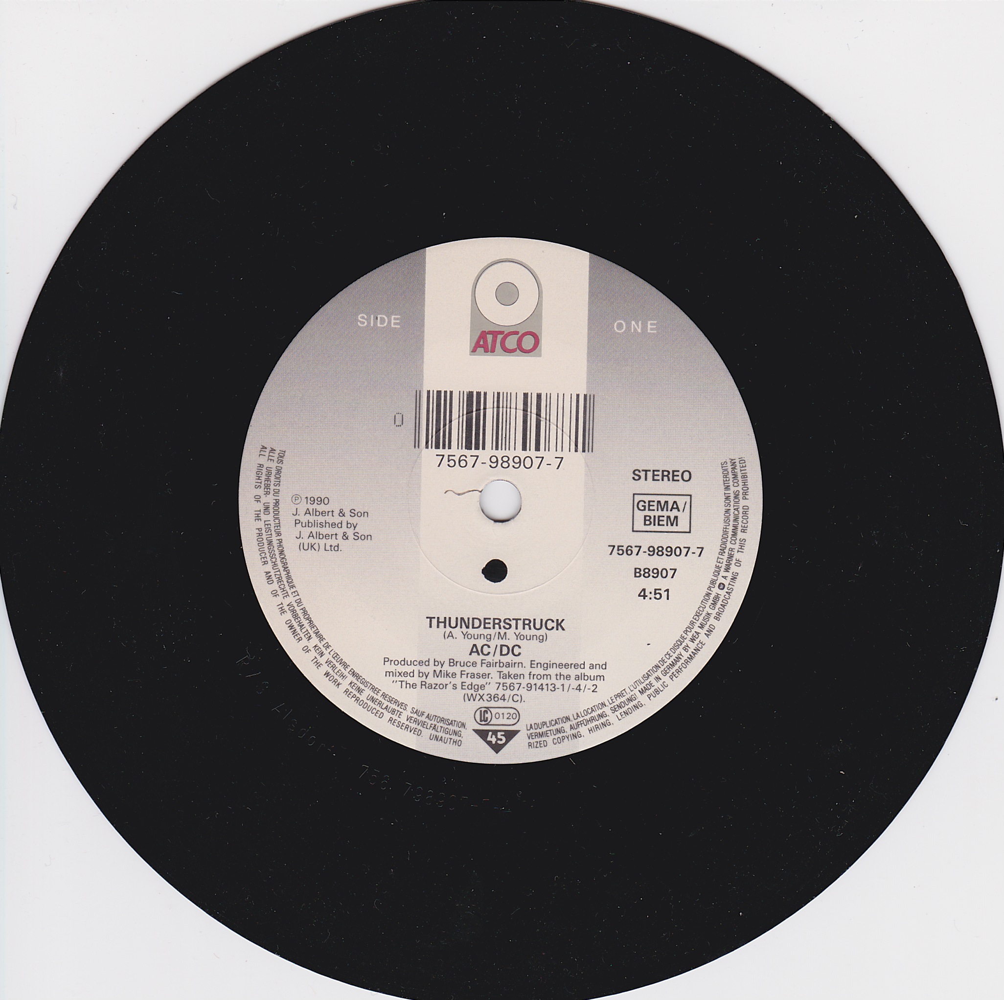 Side 1 1) Thunderstruck Side 2 1) Fire Your Guns |
