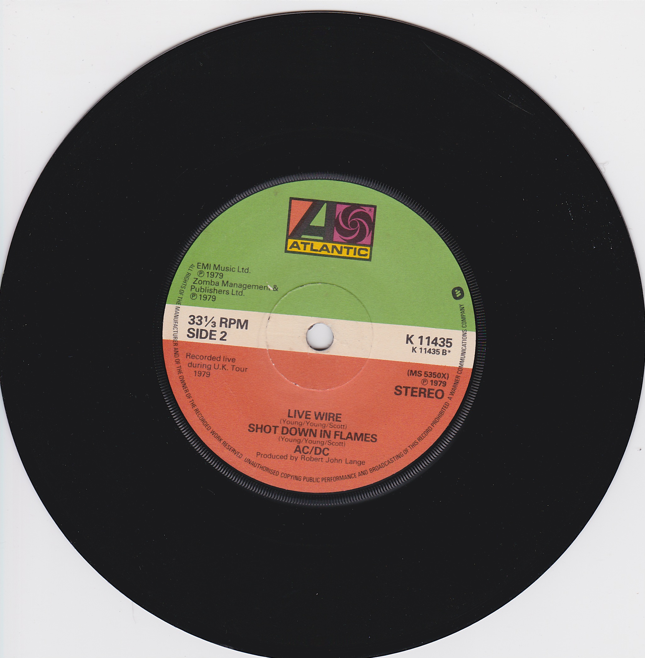 Side 1 1) Touch Too Much Side 2 1) Live Wire 2) Shot Down in Flames |