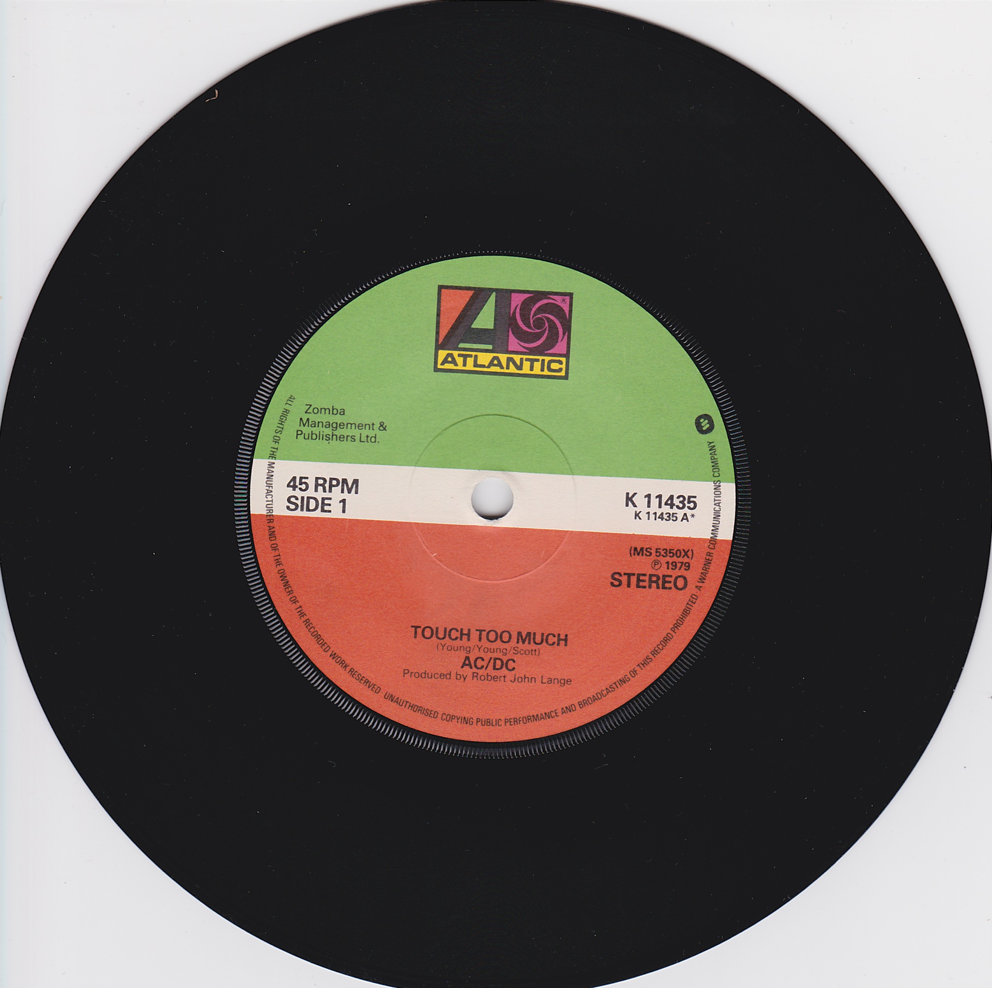 Side 1 1) Touch Too Much Side 2 1) Live Wire 2) Shot Down in Flames |