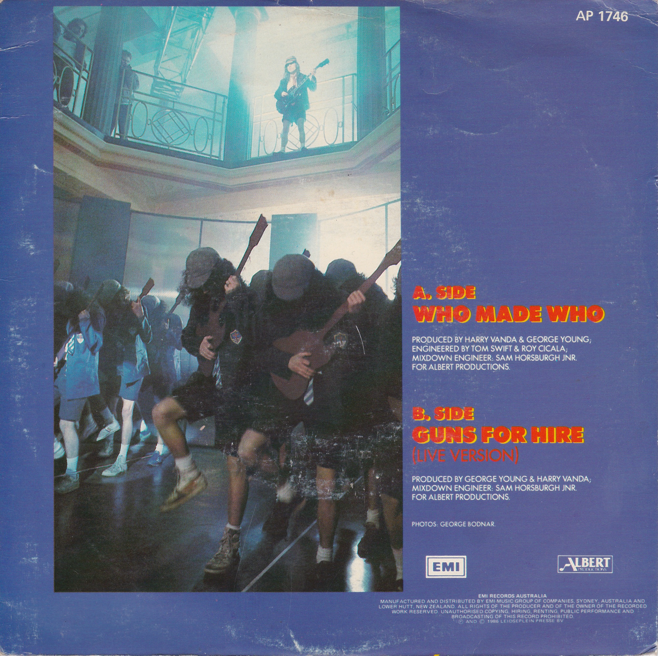 Side 1 1) Who Made Who Side 2 1) Guns for Hire (Live) |