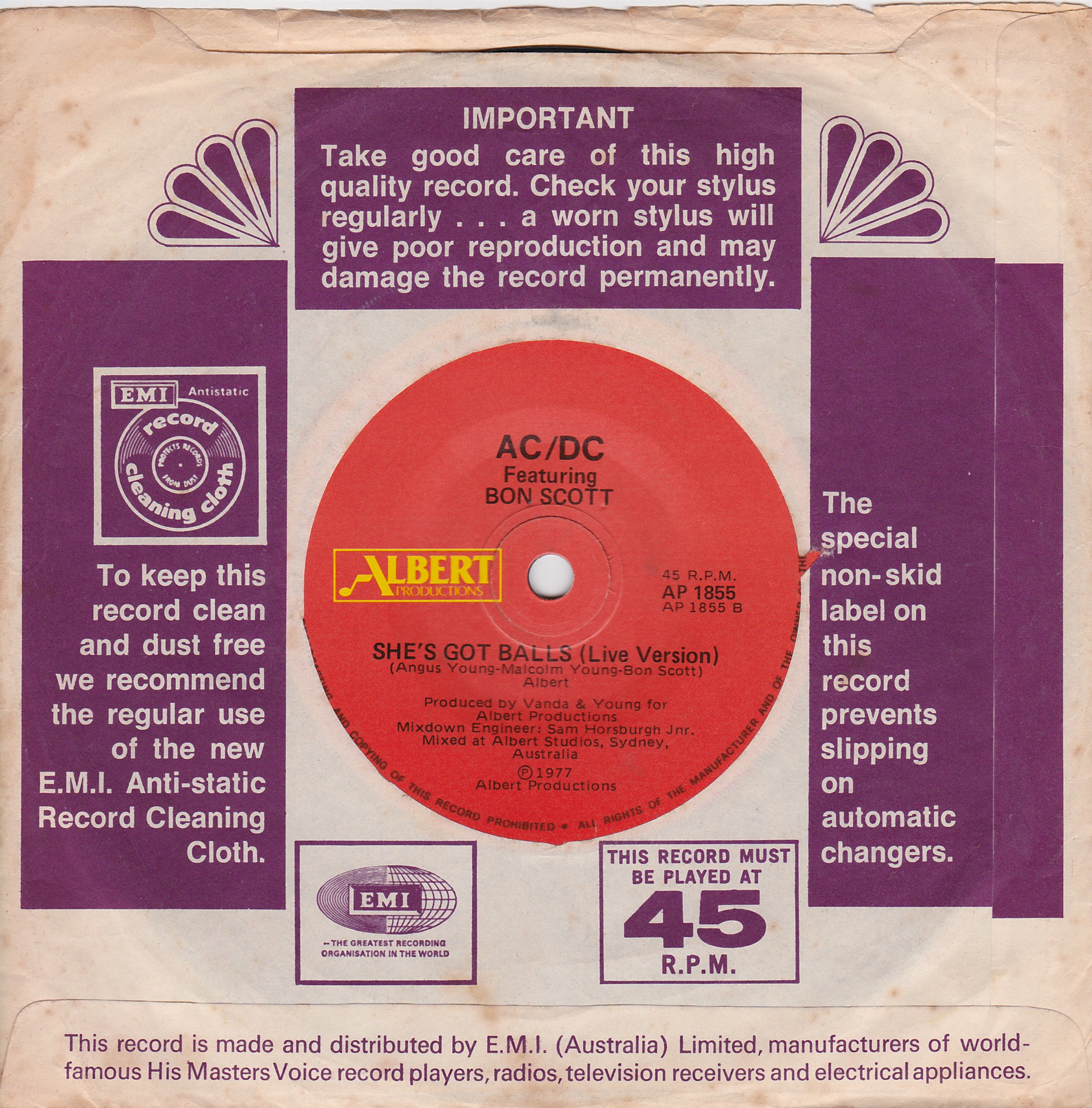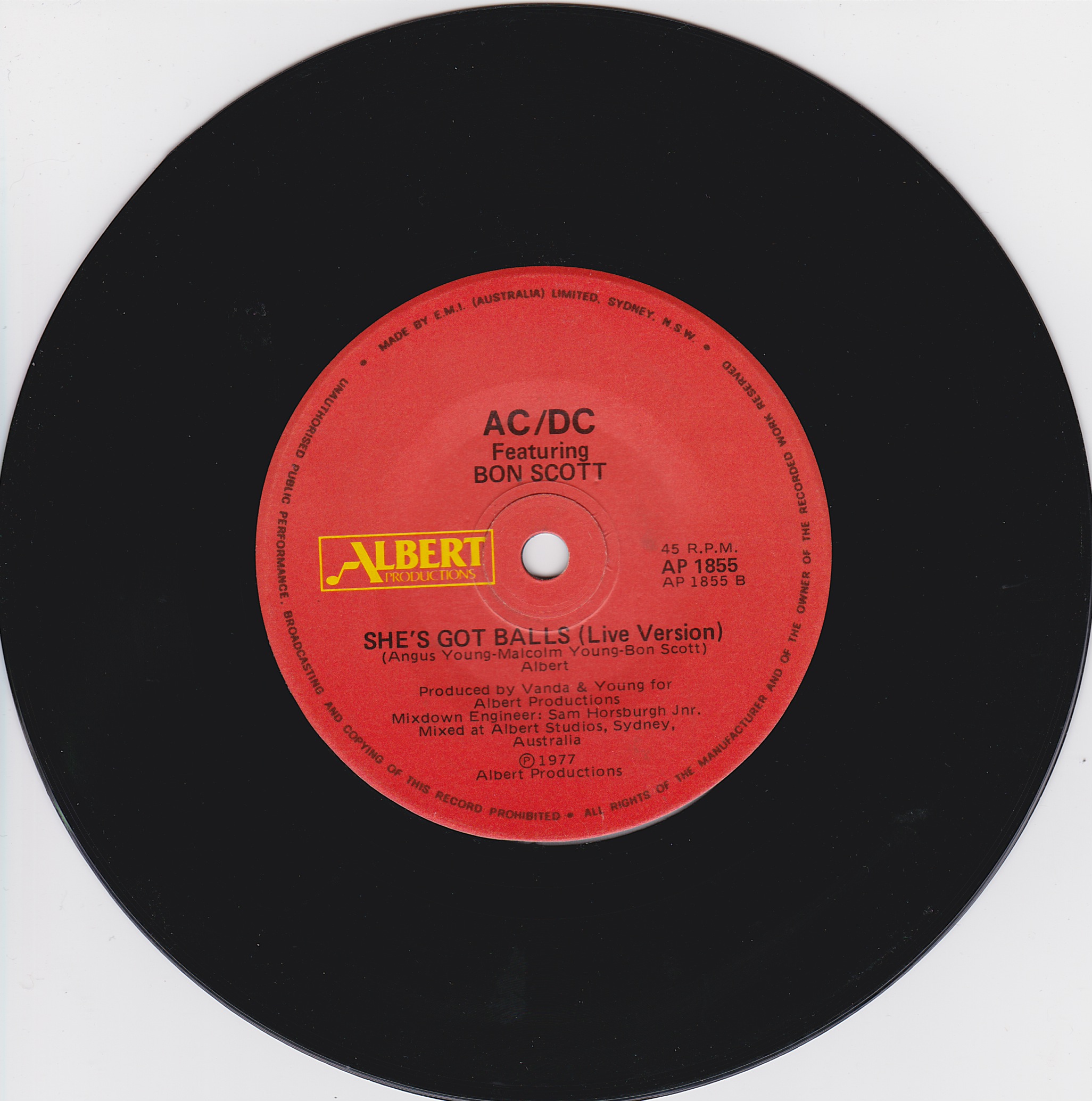 Side 1 1) You Shook Me All Night Long Side 2 1) She's Got Balls (live) |