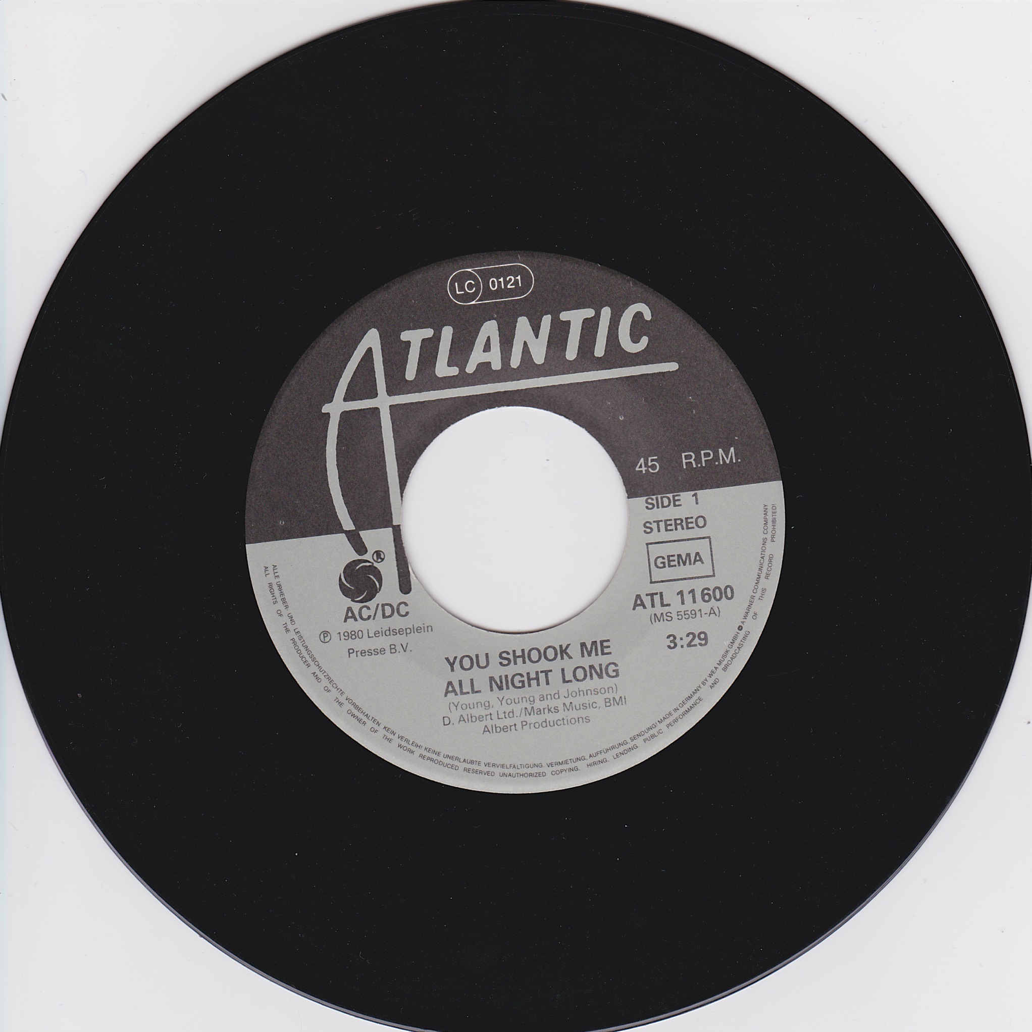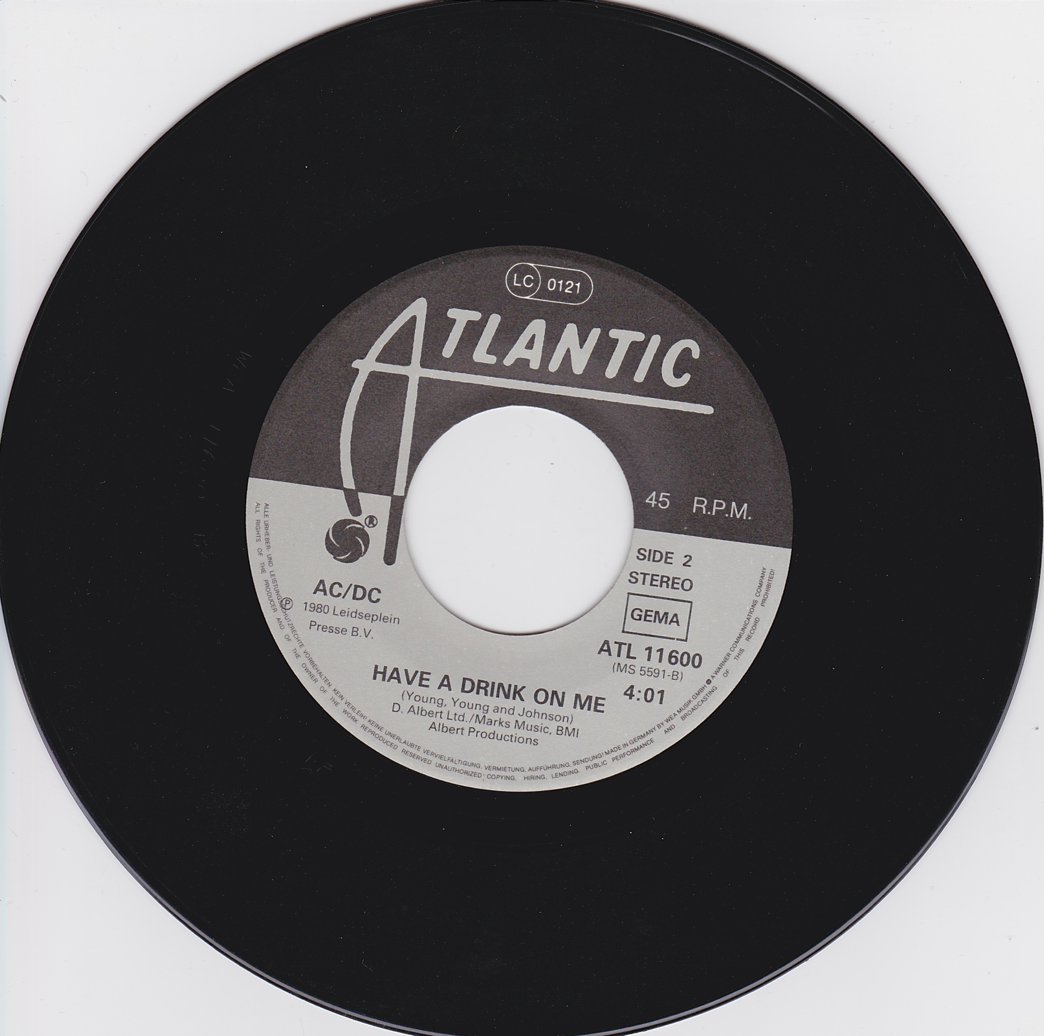 Side 1 1) You Shook Me All Night Long Side 2 1) Have a Drink on Me |
