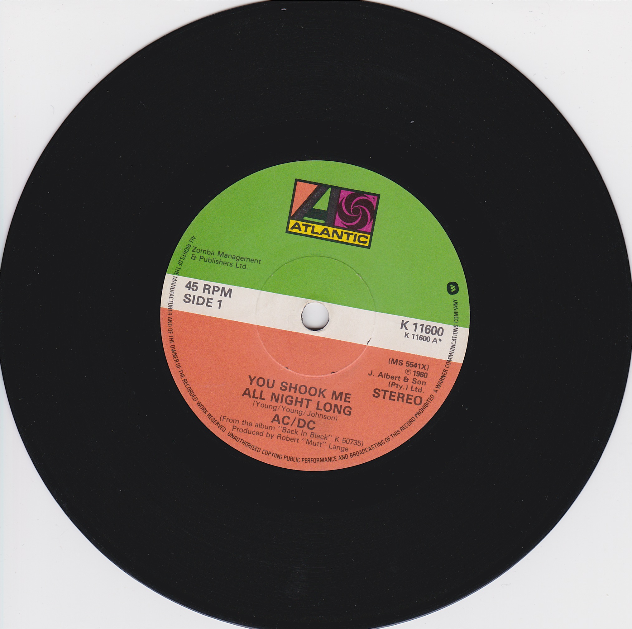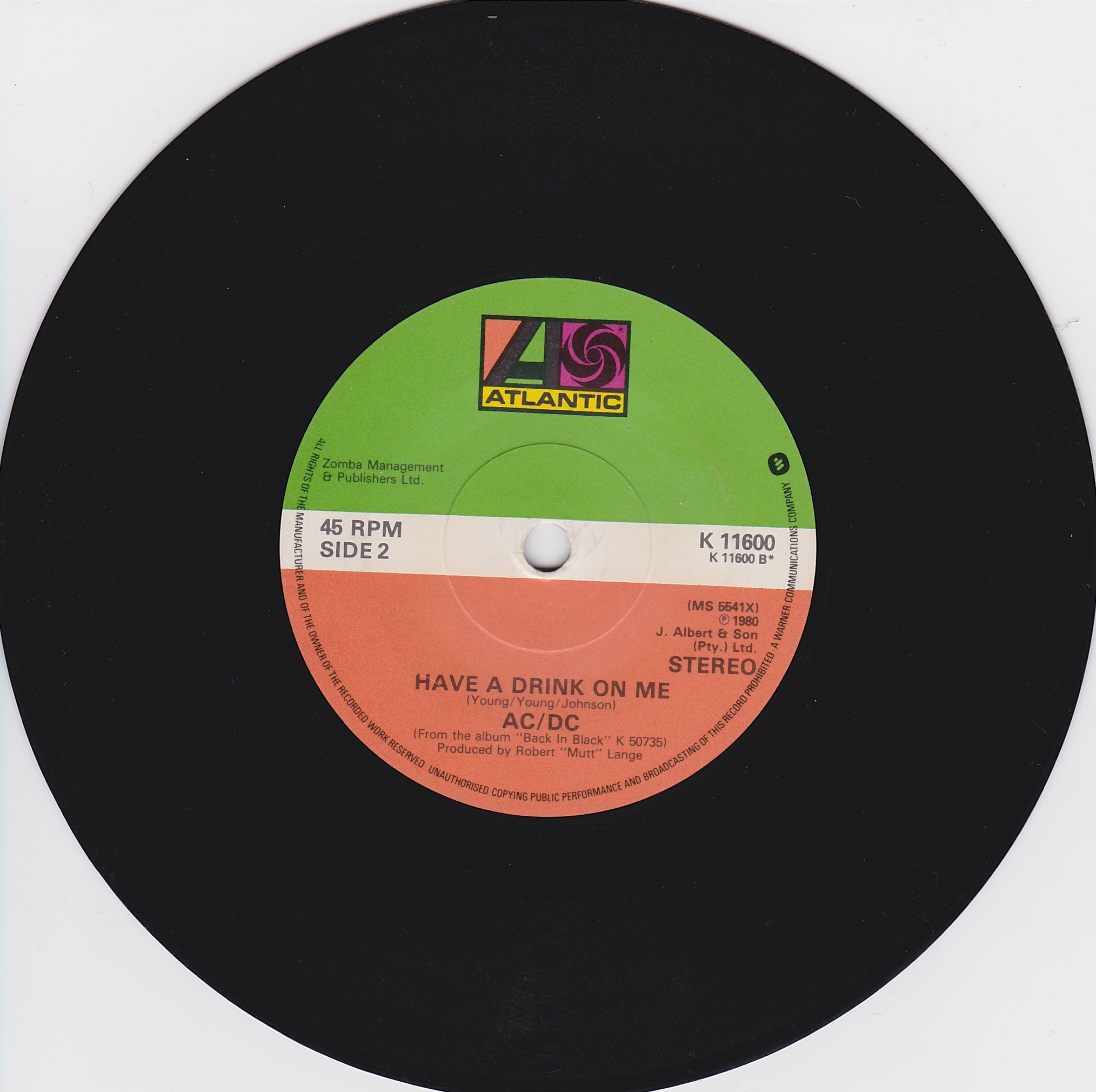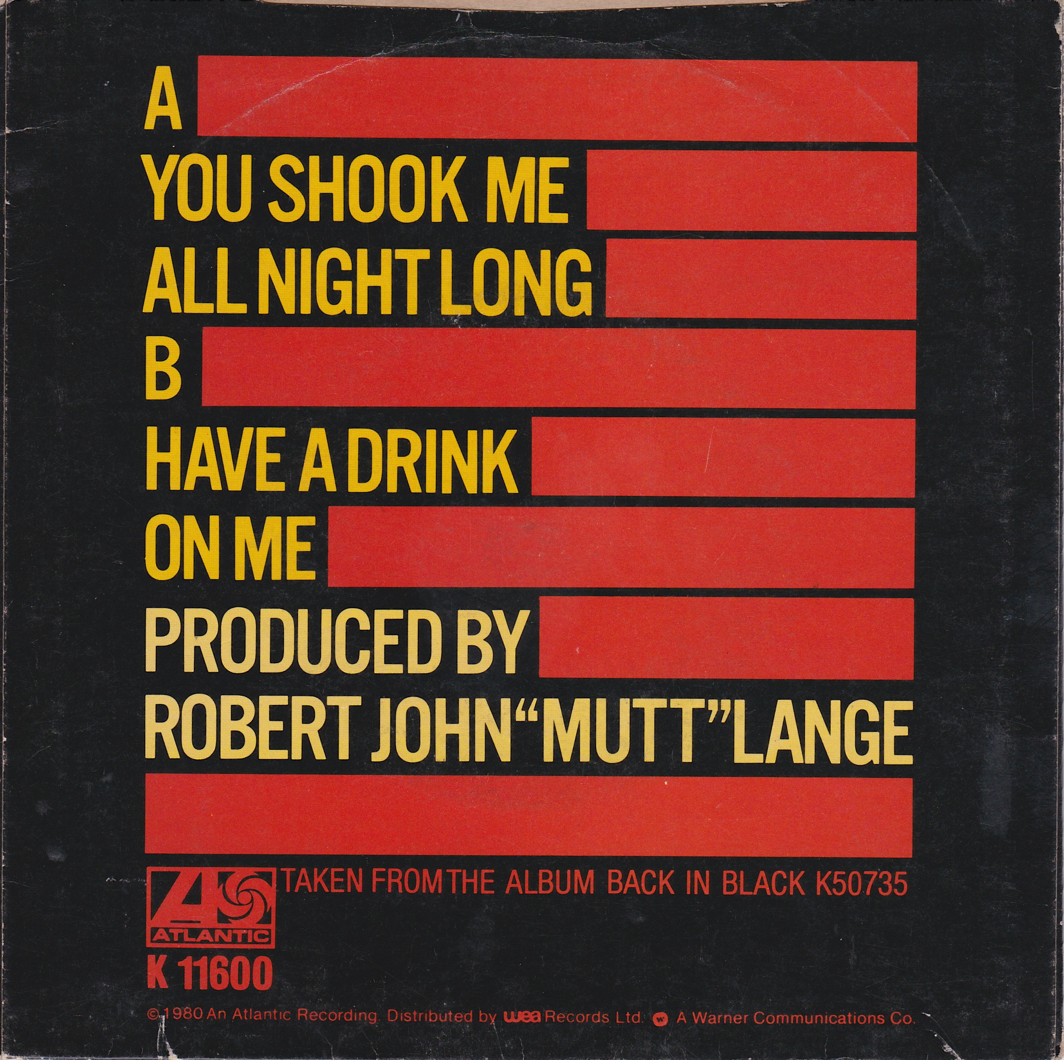 Side 1 1) You Shook Me All Night Long Side 2 1) Have a Drink on Me |