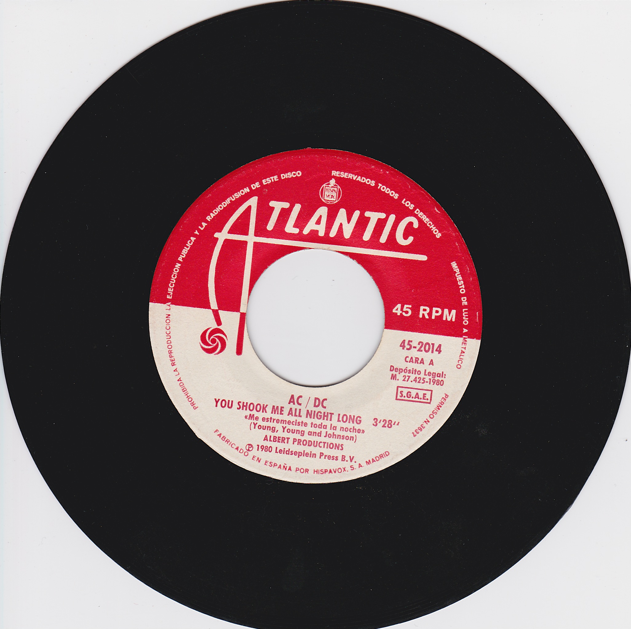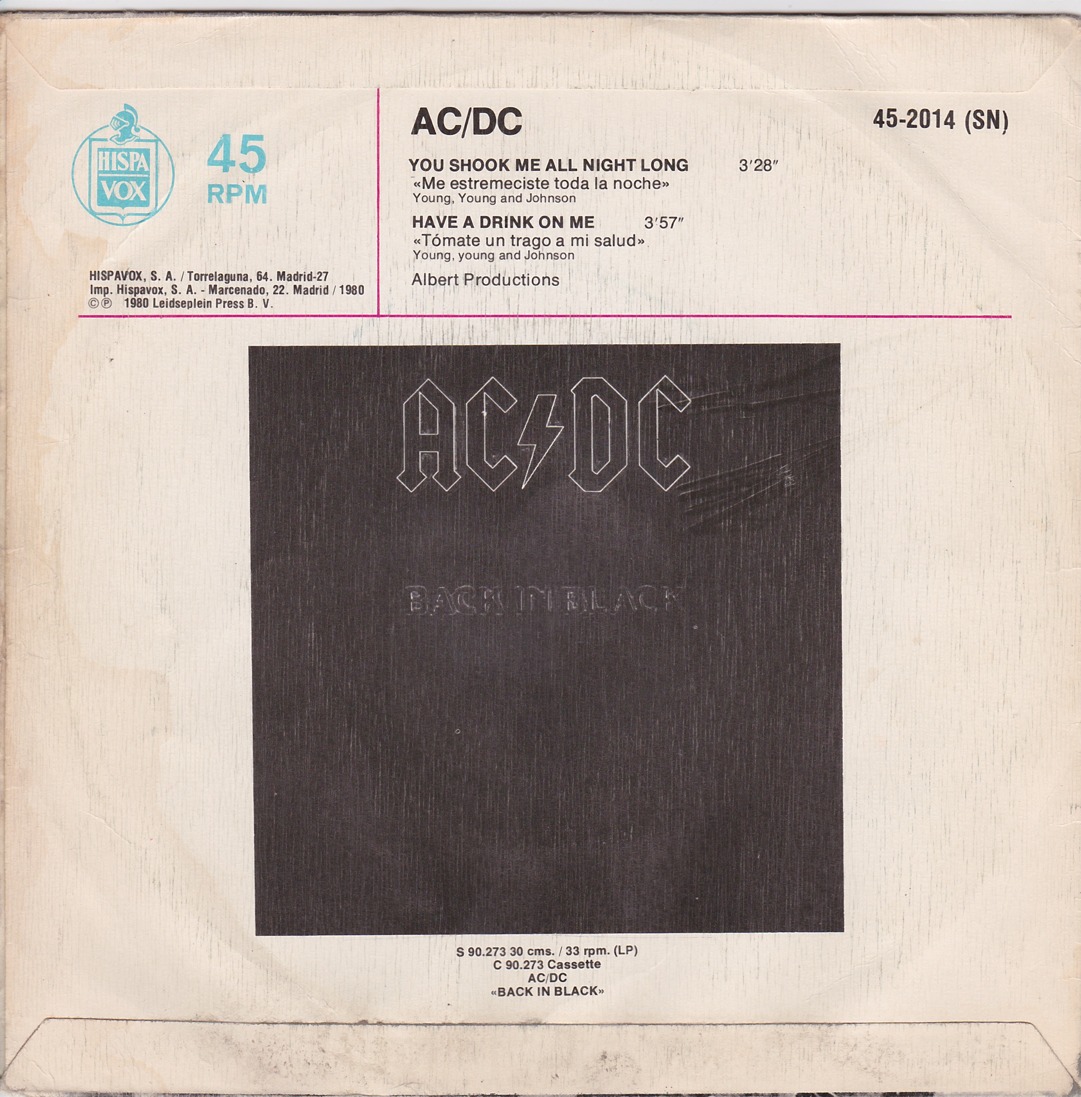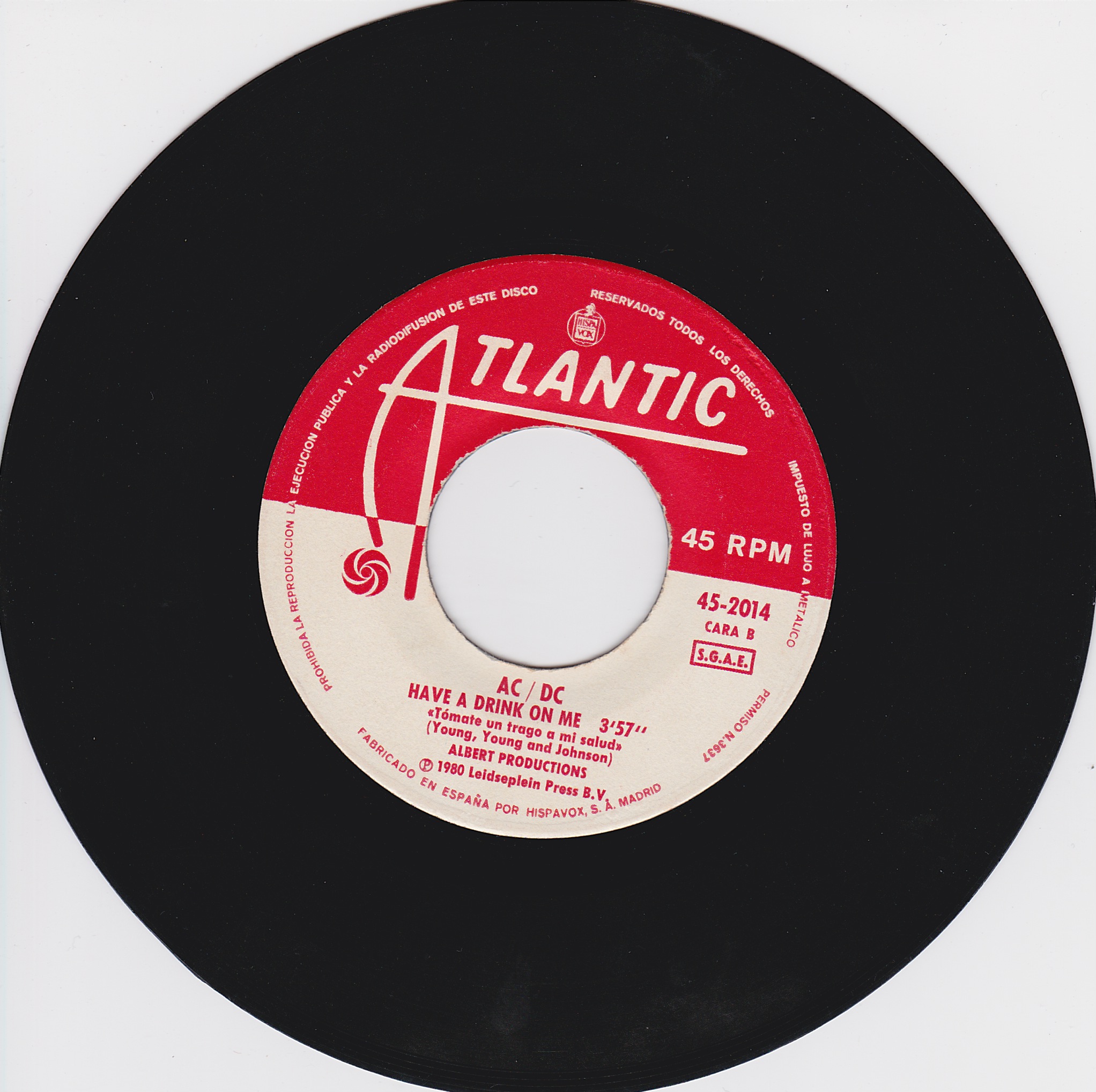 Side 1 1) You Shook Me All Night Long Side 2 1) Have a Drink on Me |