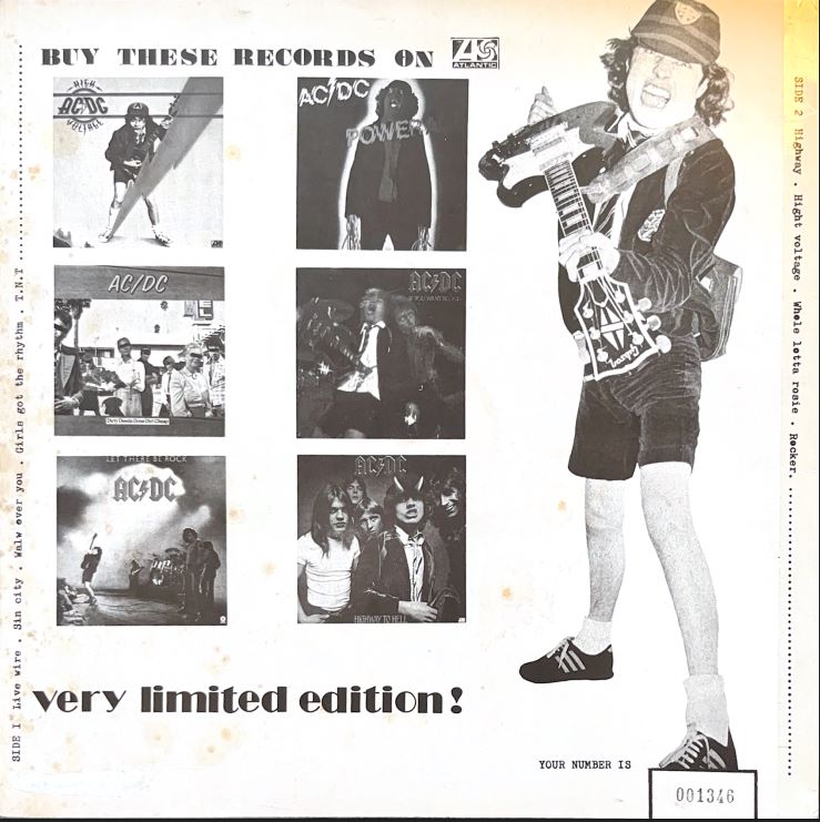 Side 1 1) Live Wire 2) Sin City 3) Girls Got Rhythm 4) TNT Side 2 1) Highway to Hell 2) High Voltage 3) Whole Lotta Rosie 4) Rocker |