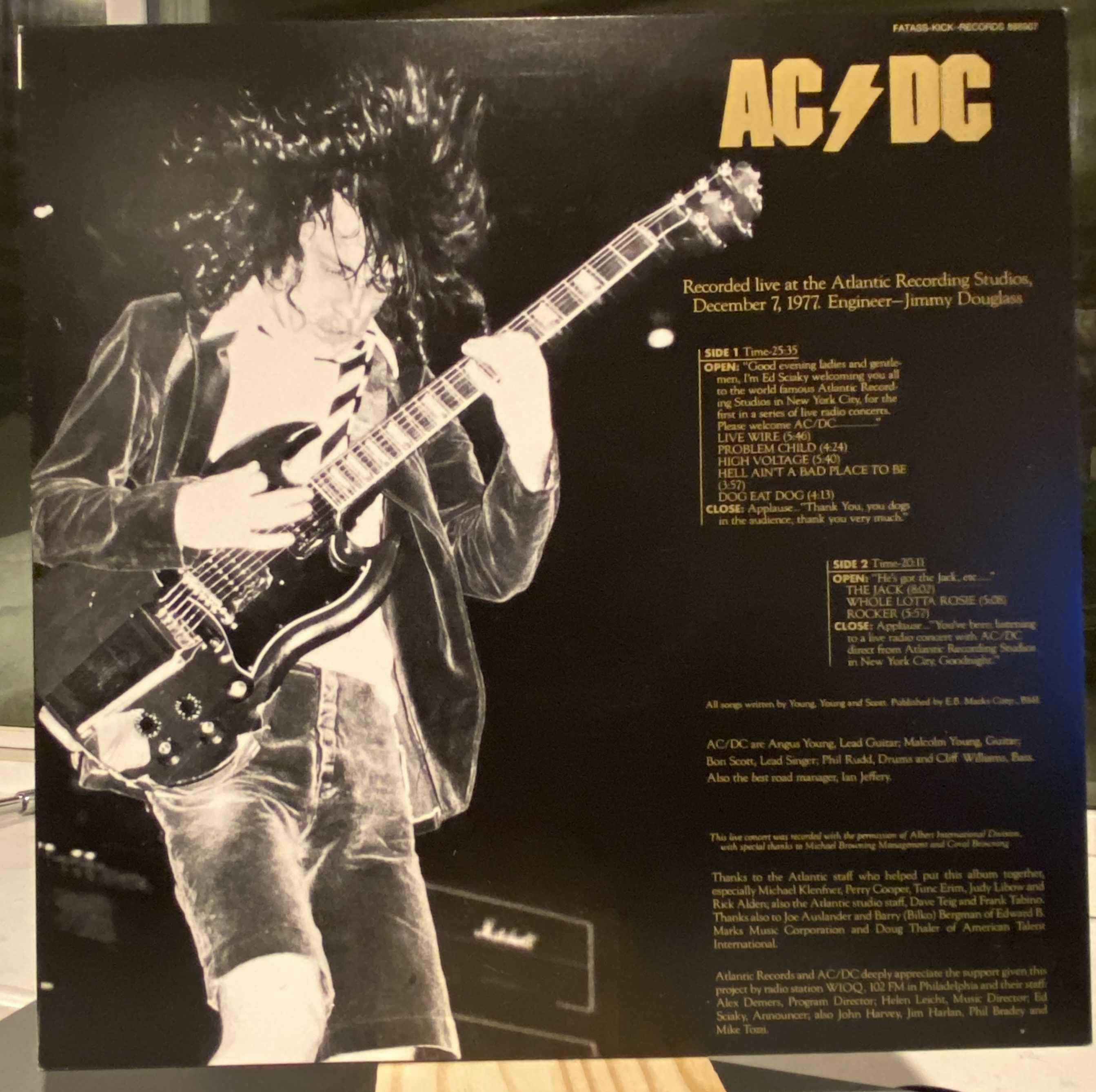Side 1 1) Live Wire 2) Problem Child 3) High Voltage 4) Hell Ain't a Bad Place to Be 5) Dog Eat Dog Side 2 1) The Jack 2) Whole Lotta Rosie 3) Rocker |
