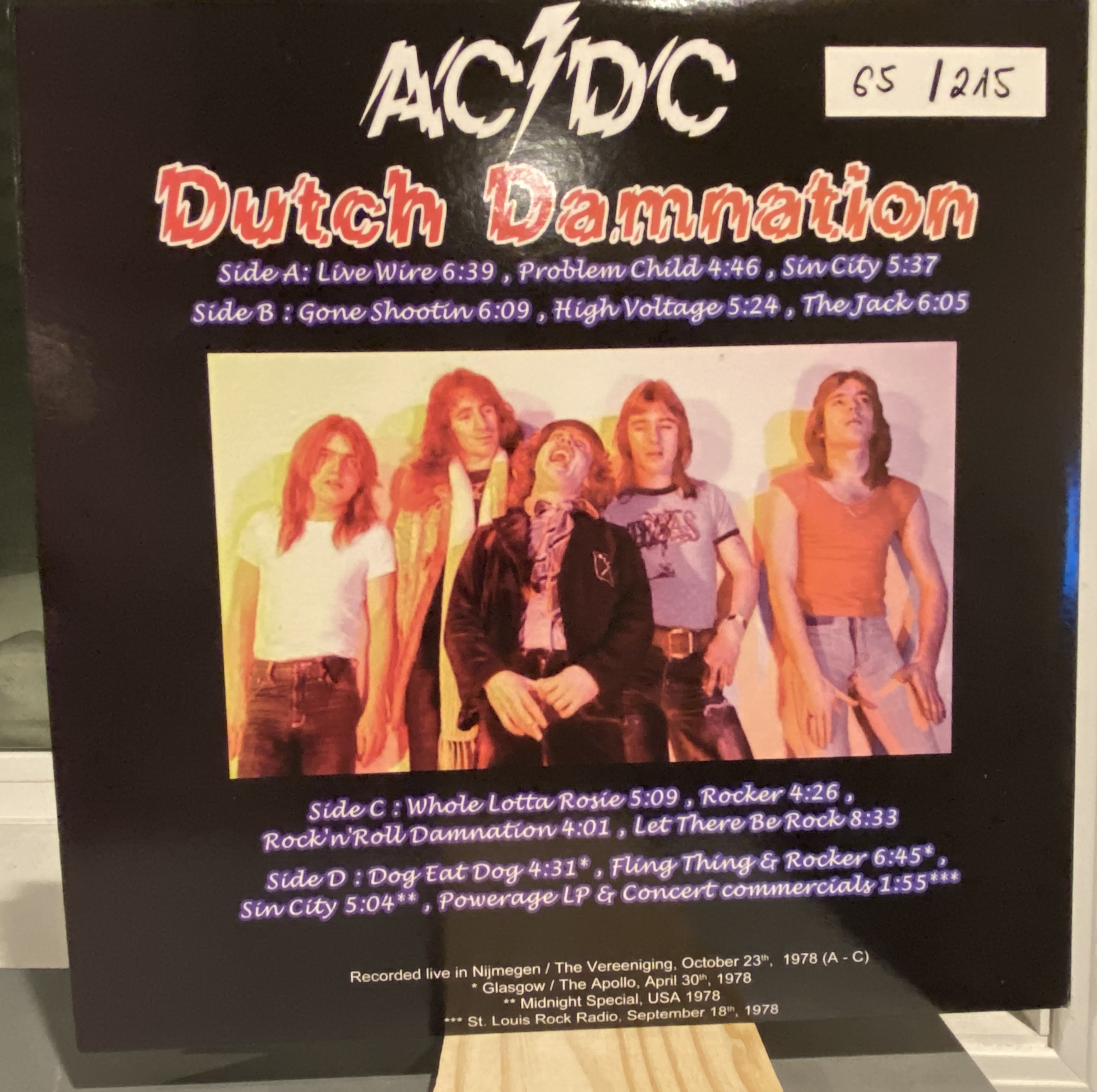 Side 1 1) Live Wire 2) Problem Child 3) Sin City Side 2 1) Gone Shootin 2) High Voltage 3) The Jack Side 3 1) Whole Lotta Rosie 2) Rocker 3) Rock and Roll Damnation 4) Let There Be Rock Side 4 1) Dog Eat Dog 2) Fling Thing/Rocker 3) Sin City 4) Powerage Radio Commercials |